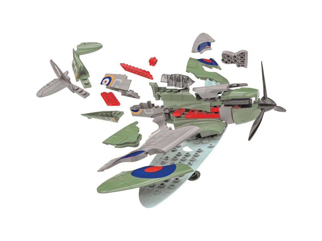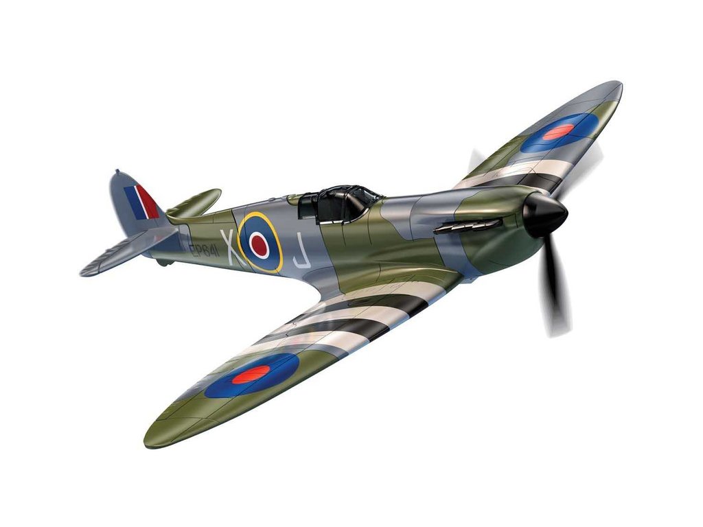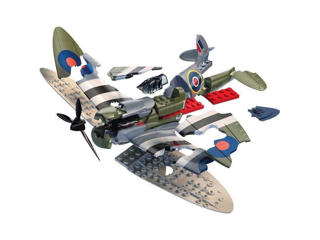 Plastikový model Airfix Quick Build J6045 – letadlo Spitfire D-Day. Stavebnice obsahuje 34 dílků, rozpětí křídel 270 mm, obtížnost 1.