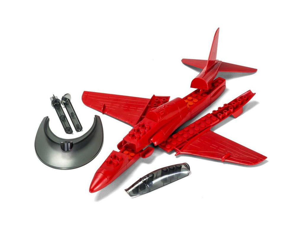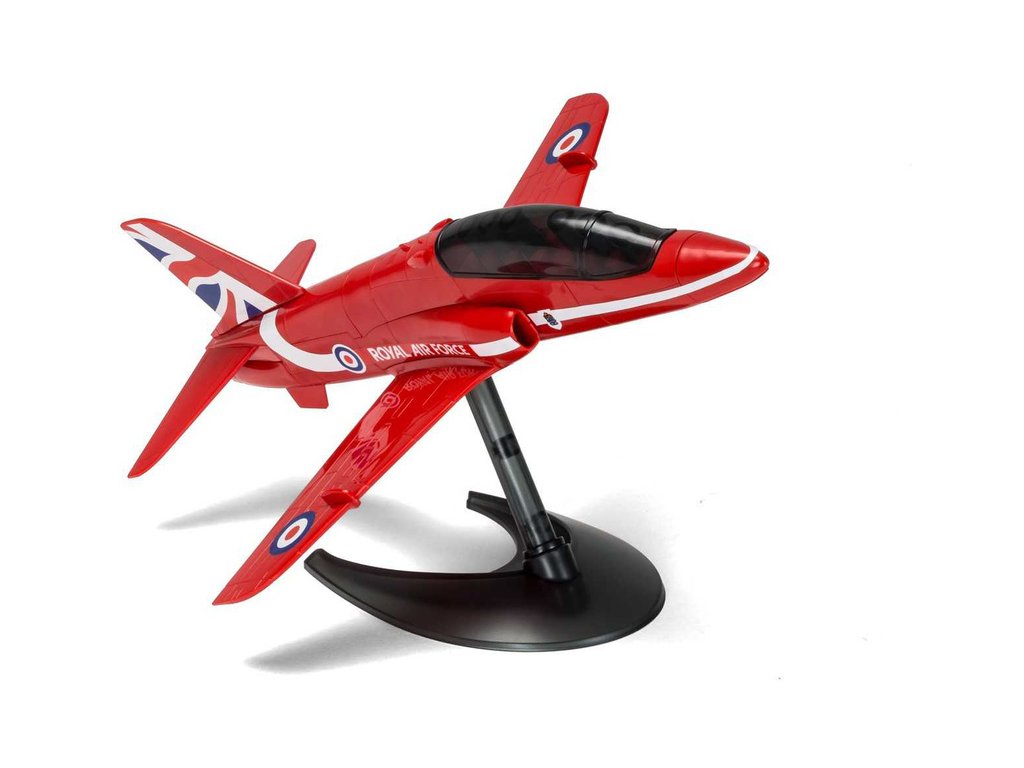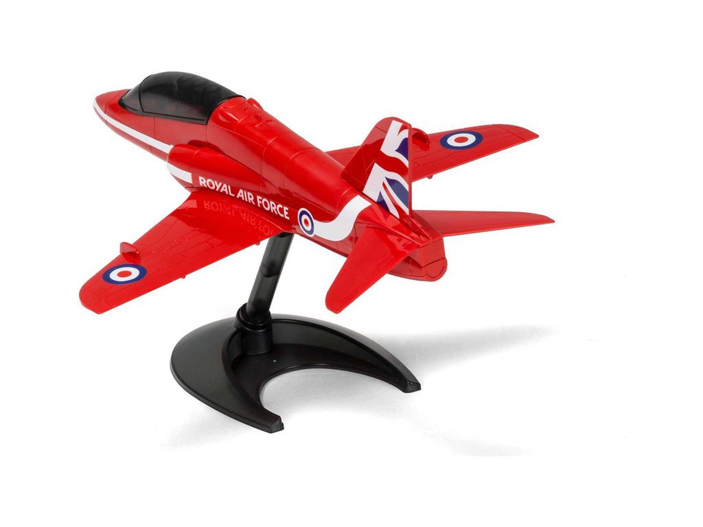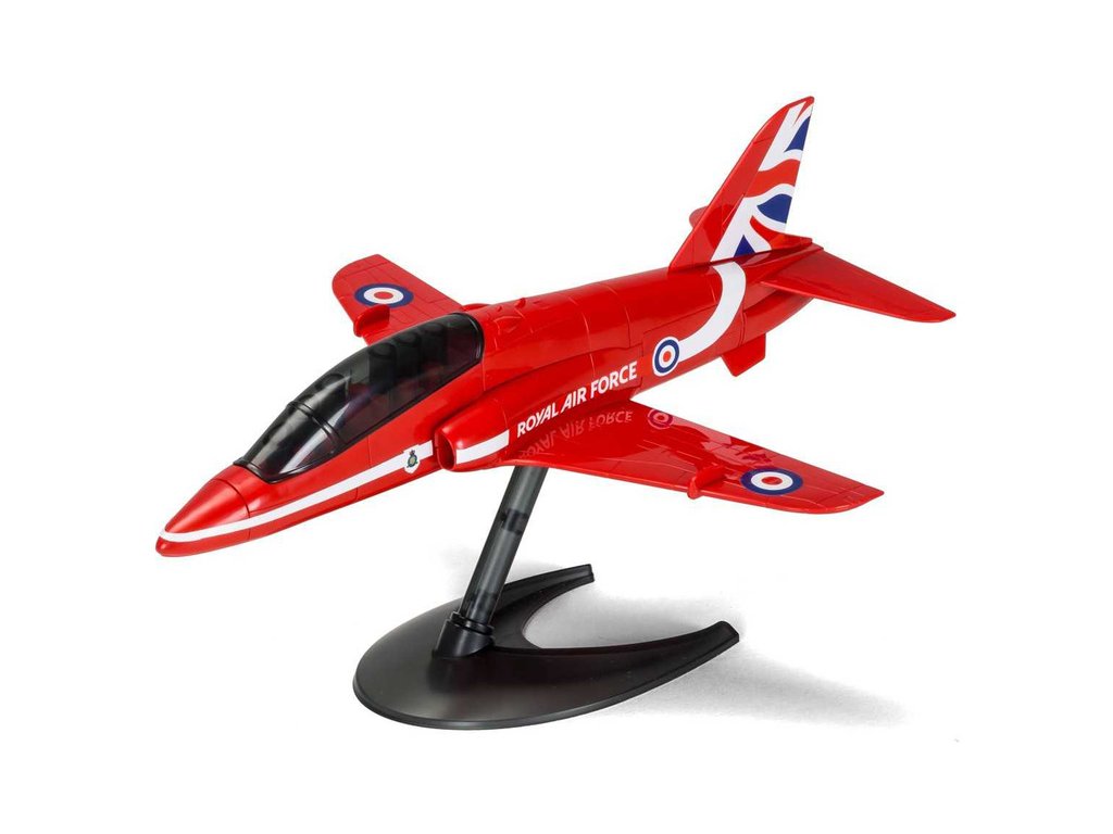 Plastikový model Airfix Quick Build J6018 – letadlo RAF Red Arrows Hawk. Stavebnice obsahuje 31 dílků, rozpětí křídel 180 mm, obtížnost 1.