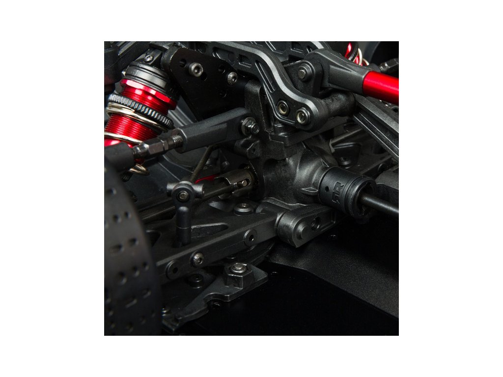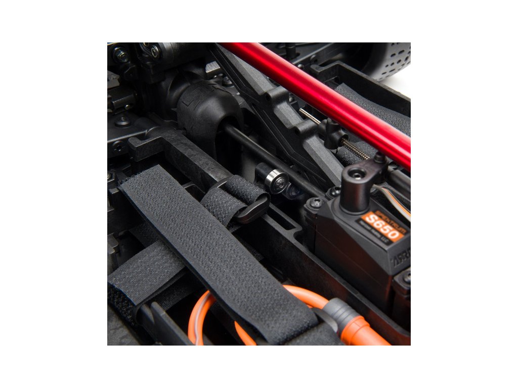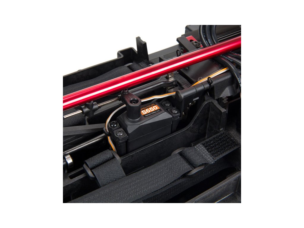 RC model auta Infraction 6S BLX pohání střídavý motor Spektrum® Firma™ 4074 2050Kv, voděodolný* regulátor Spektrum® Firma™ 150A, servo řízení ADS-15M a servo ruční brzdy S650. RC souprava Spektrum™ DX3 je vybavena funkcí AVC® Active Vehicle Control™ (elektronická stabilizace), kterou budete potřebovat při rychlé jízdě, ostré zatáčce nebo při skocích bez toho, abyste museli ubírat plyn. K uvedení do provozu je nutné doplnit dvě pohonné baterie 2S nebo 3S LiPol s konektory IC5™ nebo EC5™, vhodný nabíječ a 4 ks baterie typu AA do vysílače.