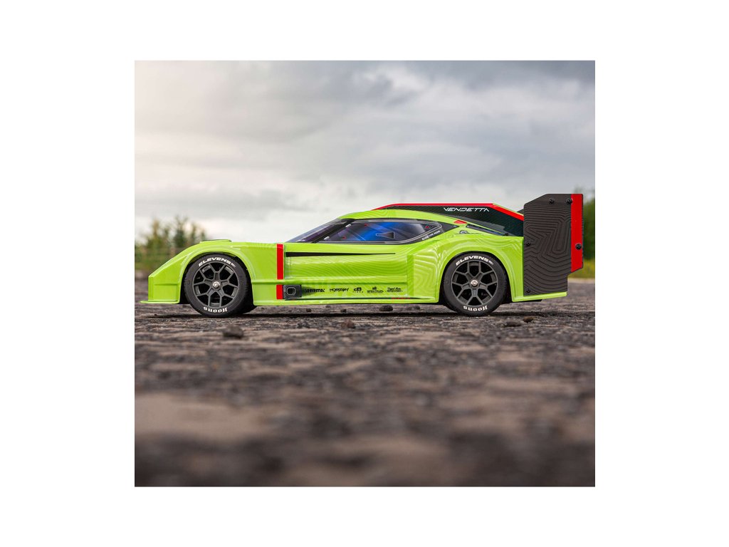 Aerodynamicky vyladěná karosérie VENDETTA™ Speed Racer obsahuje pevné přítlačné křídlo s vysokým a nízkým přítlakem. Je k dispozici s továrně dokončeným provedením s úžasným zeleným nebo modrým matným a lesklým efektem lakování s obtisky.