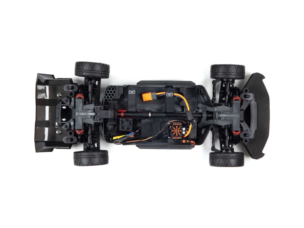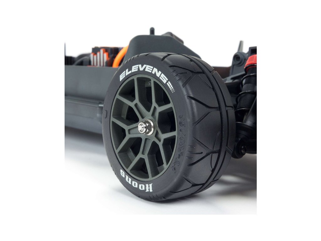 Maximalizujete rychlostní potenciál výkonného střídavého motoru Spektrum™ Firma™ 3660 3900 Kv a přítlačného křídla s vysokým a nízkým přítlakem, které na aerodynamicky vyladěné karoserii pomáhají udržet vaše pneumatiky přilepené k povrchu. Celoodpružené pneumatiky dBoots® Hoons Elevens jsou obuty do odolných nylonových disků, nabarvených kovovou barvou. Pneumatiky zajišťují neuvěřitelnou přilnavost za všech povrchových podmínek, zatímco velký zadní dvojitý difuzor snižuje turbulenci a odpor karosérie.