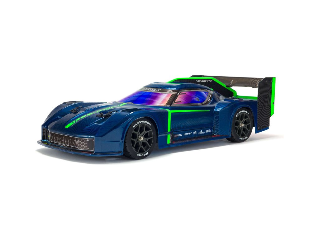 Karosérie VENDETTA™ 4X4 3S BLX Speed Racer jsou k dispozici s tovární povrchovou úpravou v zeleném nebo modrém matném a lesklém efektu lakování, s aplikovanými obtisky. Je zapotřebí pouze 2S nebo 3S LiPol baterie v pevném pouzdře HC, kompatibilní nabíječ a čtyři AA baterie pro vysílač.