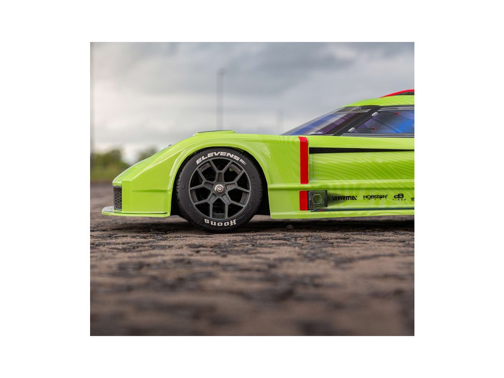 Maximalizujete rychlostní potenciál výkonného střídavého motoru Spektrum™ Firma™ 3660 3900 Kv a přítlačného křídla s vysokým a nízkým přítlakem, které na aerodynamicky vyladěné karoserii pomáhají udržet vaše pneumatiky přilepené k povrchu. Celoodpružené pneumatiky dBoots® Hoons Elevens jsou obuty do odolných nylonových disků, nabarvených kovovou barvou. Pneumatiky zajišťují neuvěřitelnou přilnavost za všech povrchových podmínek, zatímco velký zadní dvojitý difuzor snižuje turbulenci a odpor karosérie.