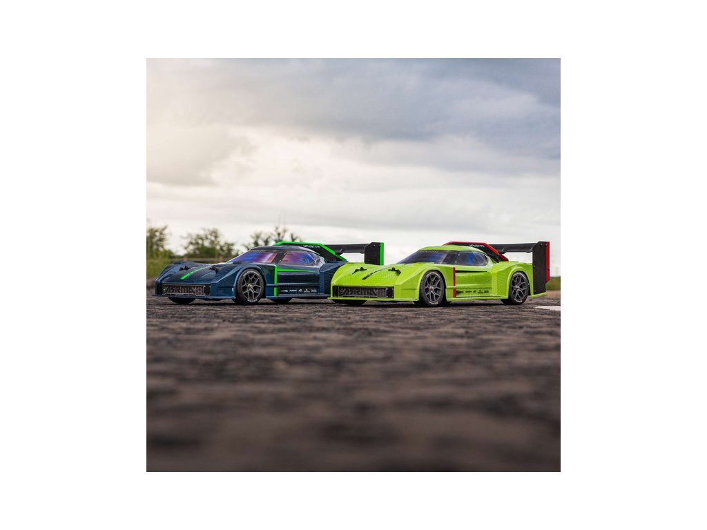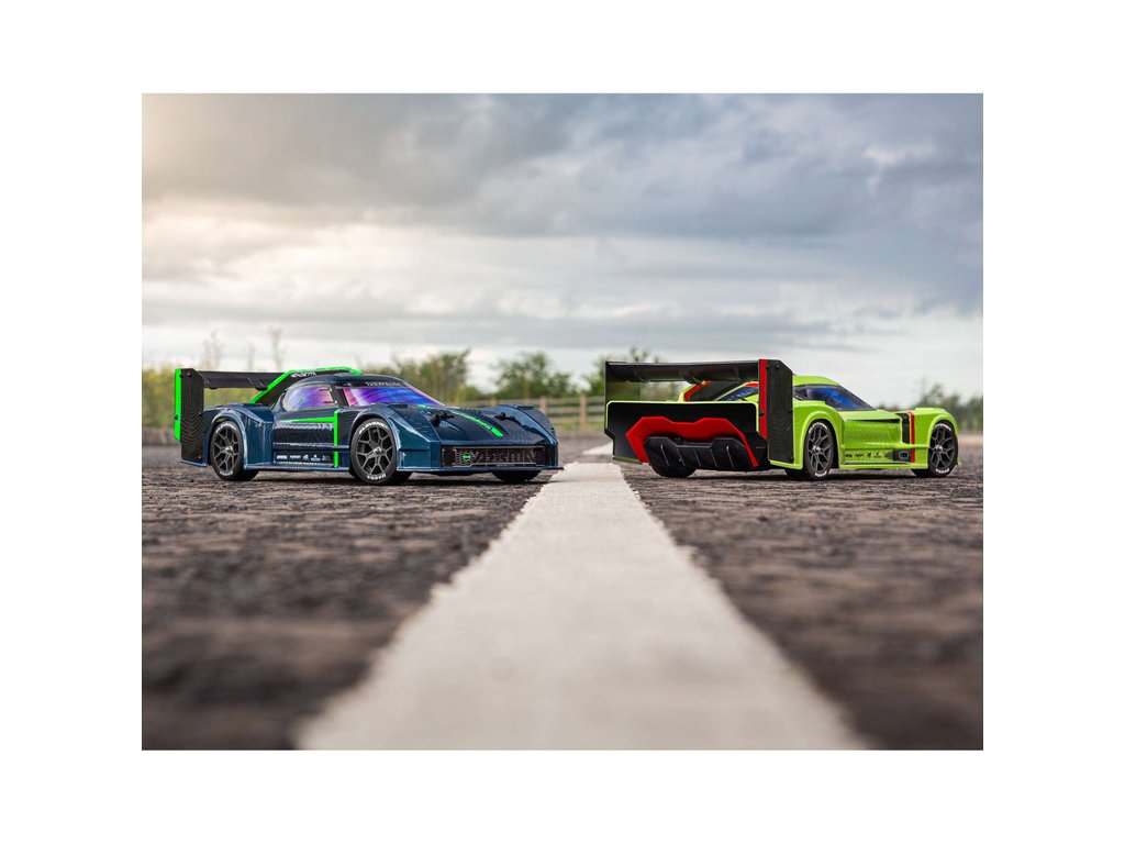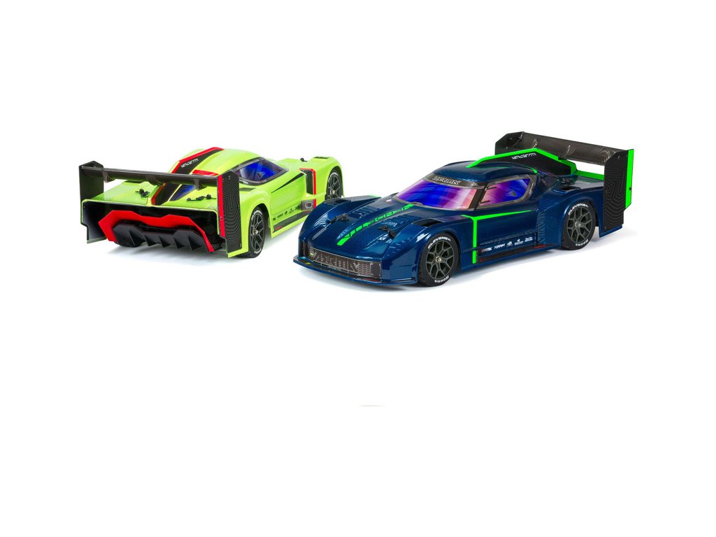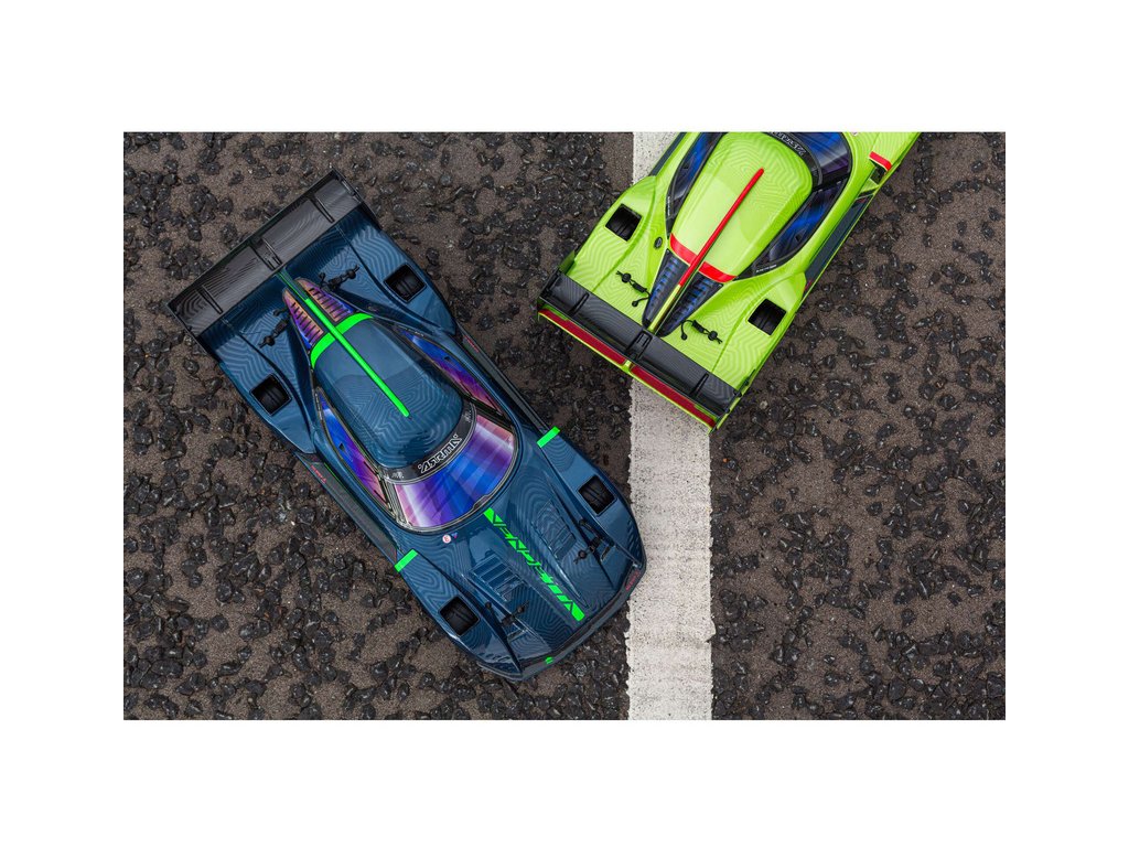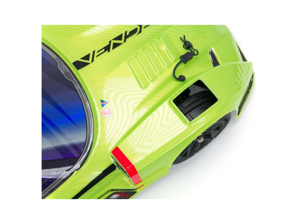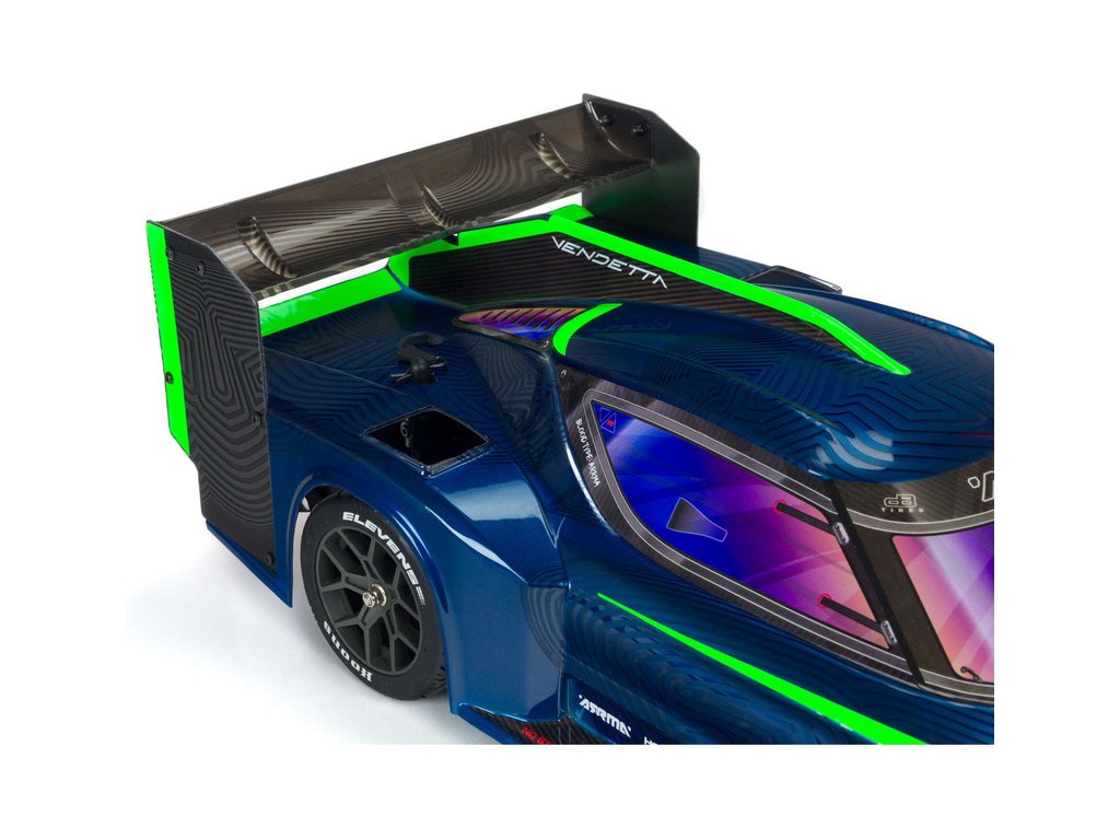 Aerodynamicky vyladěná karosérie VENDETTA™ Speed Racer obsahuje pevné přítlačné křídlo s vysokým a nízkým přítlakem. Je k dispozici s továrně dokončeným provedením s úžasným zeleným nebo modrým matným a lesklým efektem lakování s obtisky.
