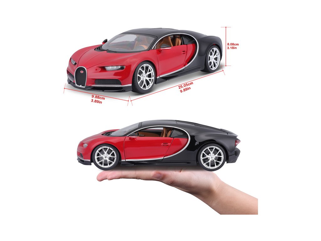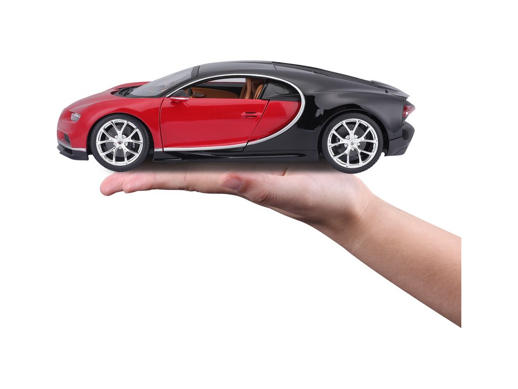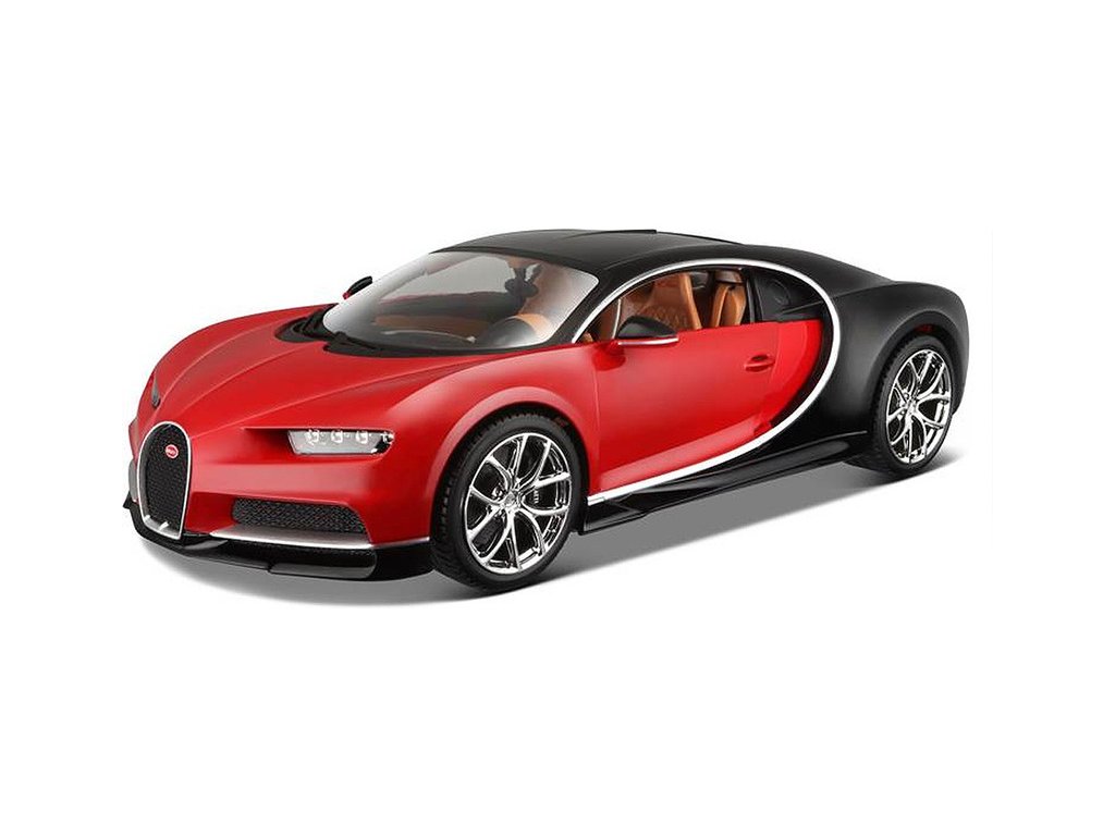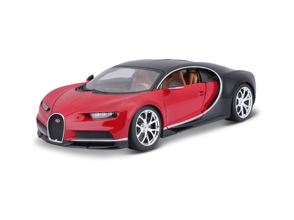Kovový model auta 1:18 Bburago 18-11040R Plus Bugatti Chiron nejen pro sběratele. Má otevírací dveře a kapotu, otočná kola. Vůz byl představen na 2016 Geneva International Motor Show jako nejsilnější, nejrychlejší, nejluxusnější super-sportovní vůz na světě. Barva modelu je červeno/černá.