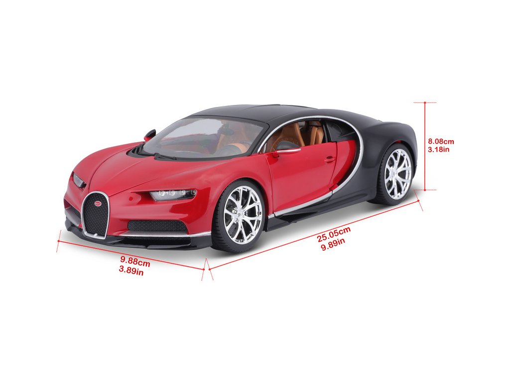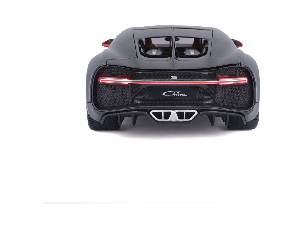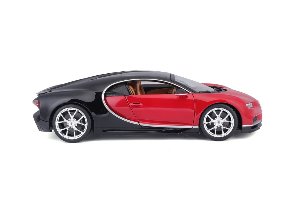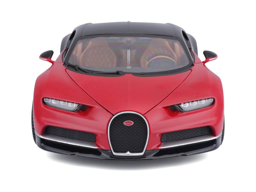 Kovový model auta 1:18 Bburago 18-11040R Plus Bugatti Chiron nejen pro sběratele. Má otevírací dveře a kapotu, otočná kola. Vůz byl představen na 2016 Geneva International Motor Show jako nejsilnější, nejrychlejší, nejluxusnější super-sportovní vůz na světě. Barva modelu je červeno/černá.