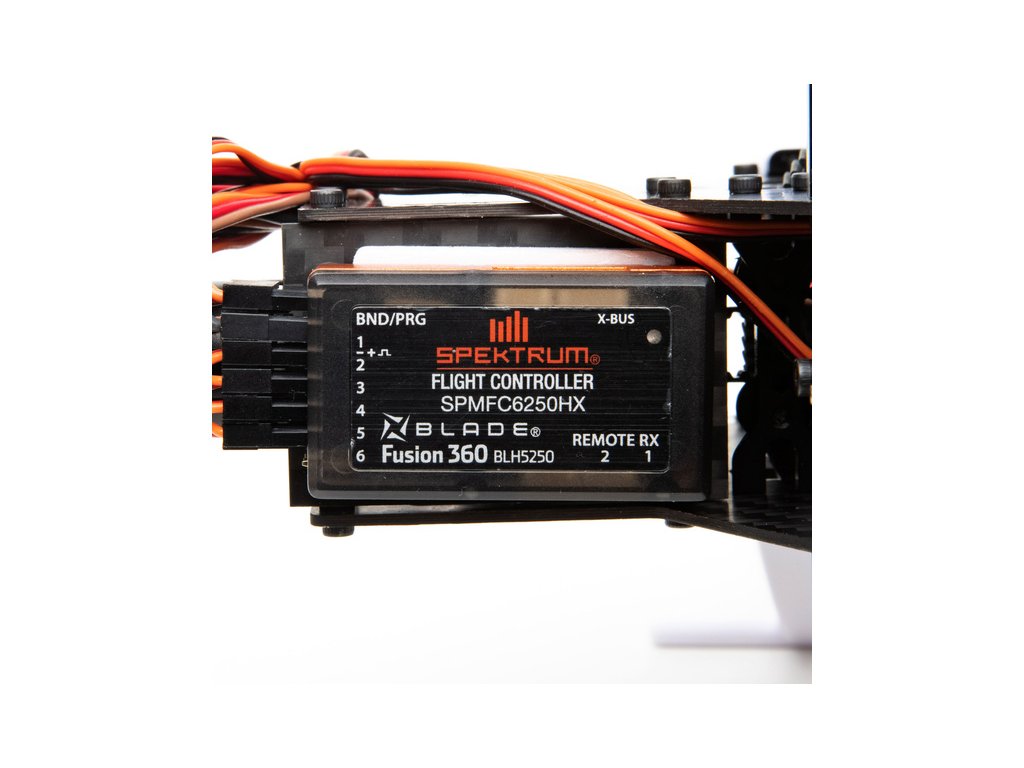 Díky nejnovějšímu pokroku v technologii Spektrum™, navazuje nové provedení Blade® Fusion™ 360 SAFE přidáním integrovaných technologií SAFE® a Smart. Díky integraci technologie Smart je nyní nabíjení baterie a správa napájecího systému snadnější než kdy dříve. Odborně vyladěný letová řídící jednotka Spektrum 6250HX jeplně funkční i po spárování s nepočítačovým vysílačem, jako je DXS, a rozšiřuje dále své možnosti při použití s pokročilejším leteckým vysílačem Spektrum. Model má high-end konstrukci, kde tuhost a minimální hmotnost je prioritně zajištěna použitím uhlíkových bočnic, hliníkových černě eloxovaných CNC součástí a špičkovým provedením součástí. Digitální serva cykliky s kovovými převody s optimalizovanou geometrií hliníkového domečku prakticky eliminují vůle v táhlech, stejně jako provedení hliníkových součástí desky cykliky a rotorové hlavy.