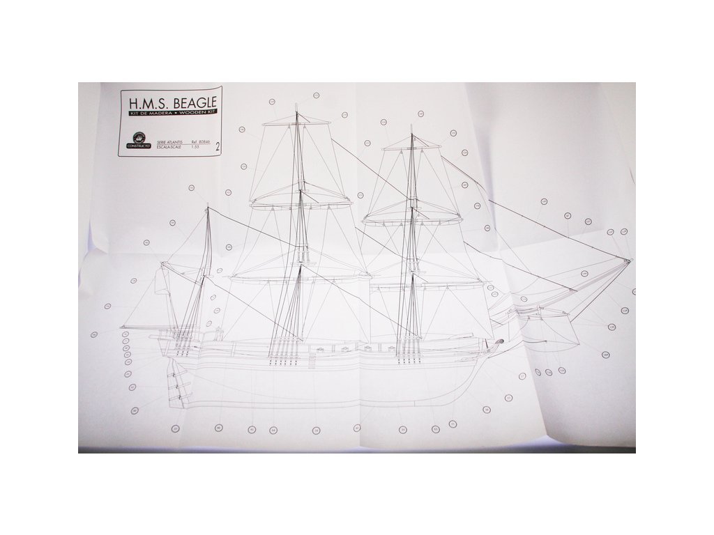Stavebnice neplovoucího modelu historické plachetní lodi H.M.S. Beagle z roku 1820 v měřítku 1:55. Briga britského královského námořnictva byla postavena loděnicí Woolwich na Temži. Náklady na stavbu činily téměř 8 000 liber. V roce 1825 se jako průzkumná loď zúčastnila 3 výzkumných expedic, Na druhé expedici pod velením kapitána Roberta FritzRoye byl na palubě také Chales Darvin. Na této cestě získal Darwin znalosti, ze kterých později rozvinul svou evoluční teorii o původu druhů.