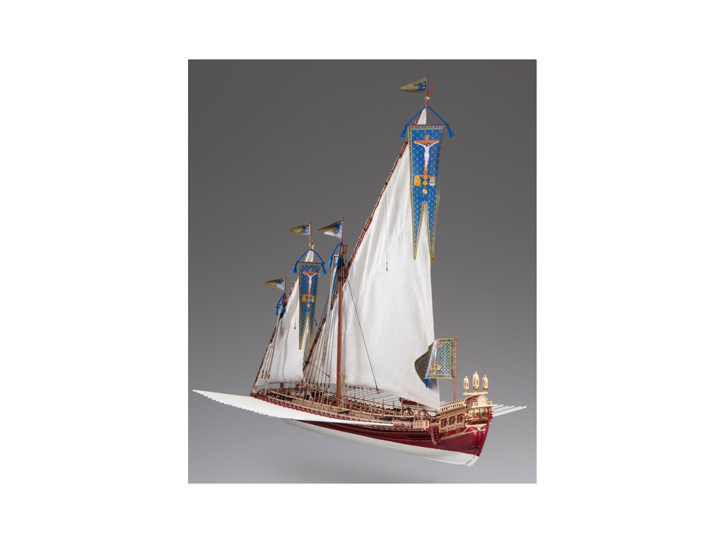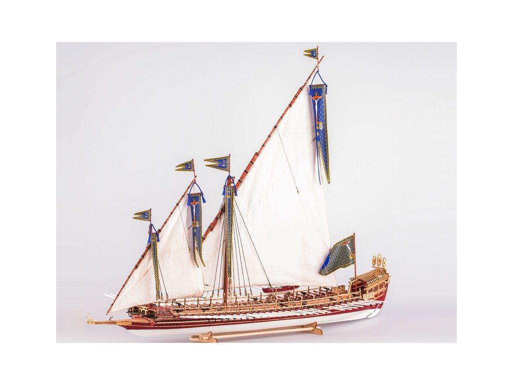 Stavebnice makety lodi La Real Galeere z roku 1571 v měřítku 1:72. Délka modelu lodi je 795mm, stavba převážně ze dřeva s drobnými doplňky, součástí je stavební plán a pokyny s mnoha podrobnými obrázky.