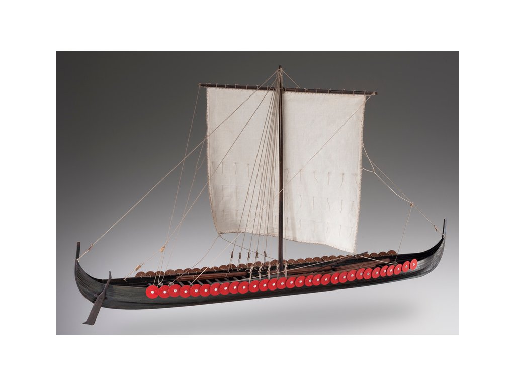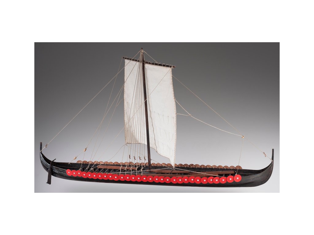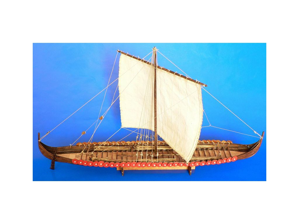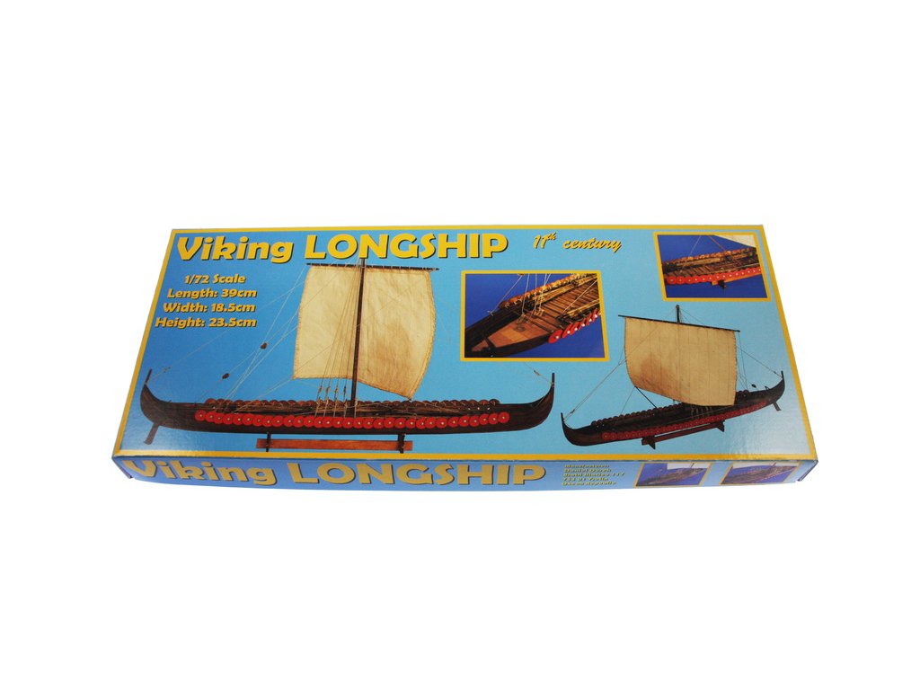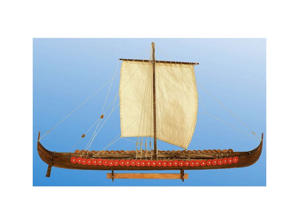 Stavebnice makety válečné Vikingské prodloužené lodi z roku cca 1060 v měřítku 1:72. Délka modelu lodi je 850mm, stavba převážně ze dřeva s drobnými doplňky, součástí stavební plán a český návod ke stavbě s mnoha podrobnými obrázky.