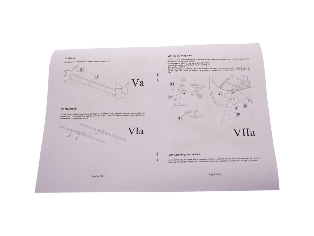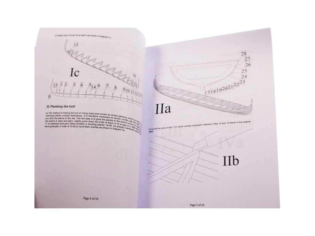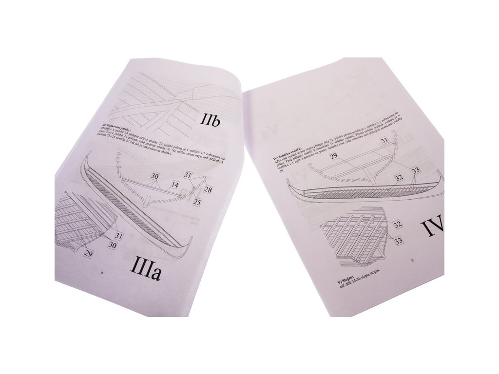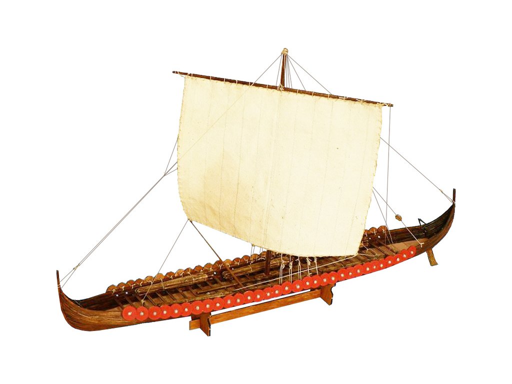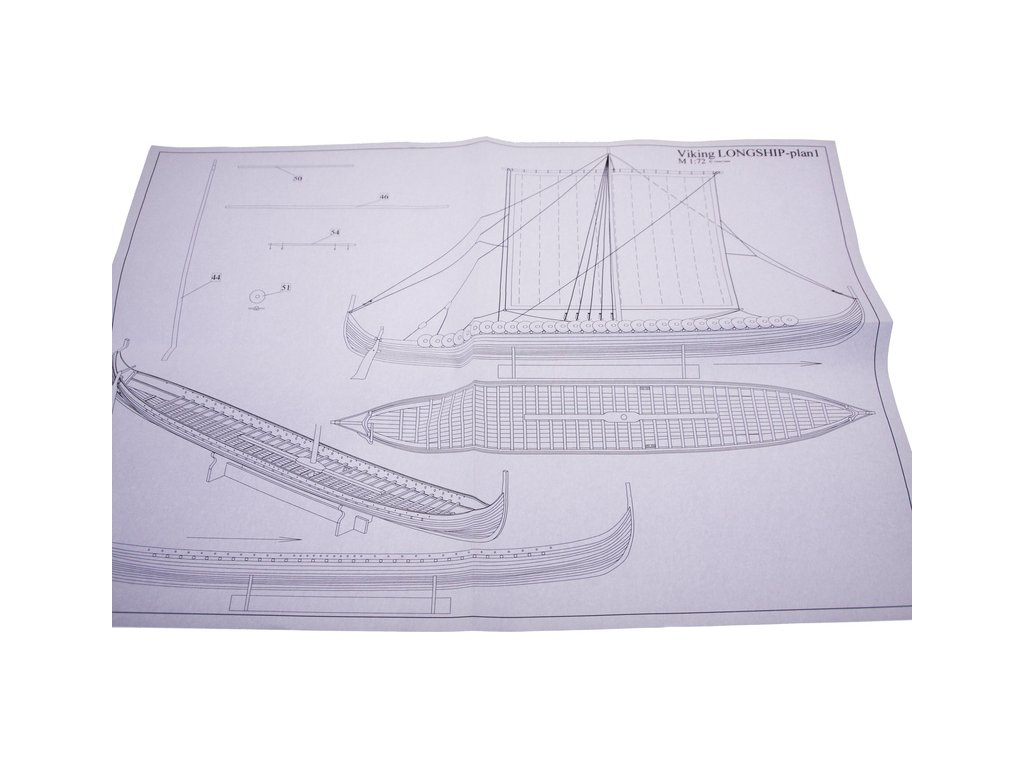 Stavebnice makety válečné Vikingské prodloužené lodi z roku cca 1060 v měřítku 1:72. Délka modelu lodi je 850mm, stavba převážně ze dřeva s drobnými doplňky, součástí stavební plán a český návod ke stavbě s mnoha podrobnými obrázky.