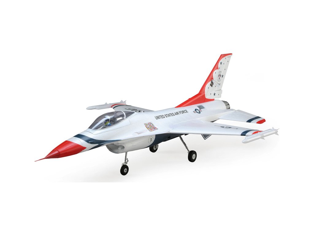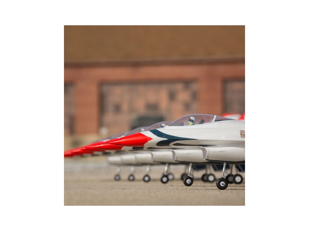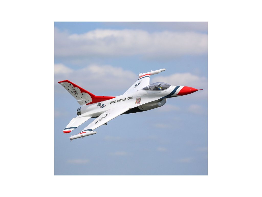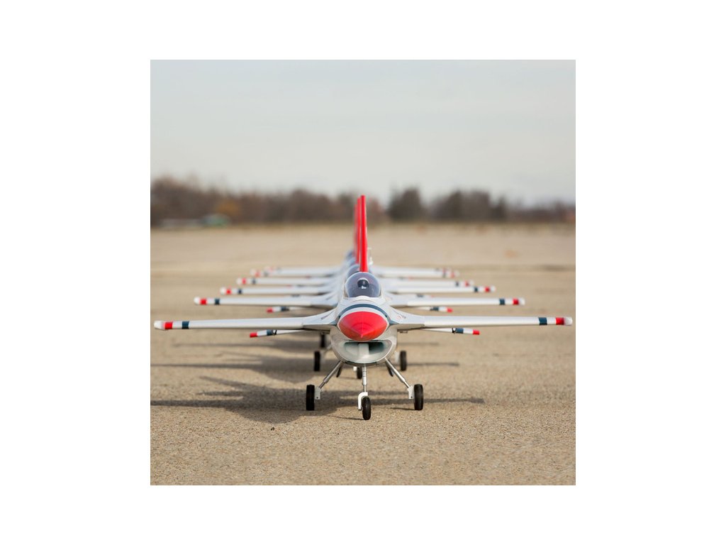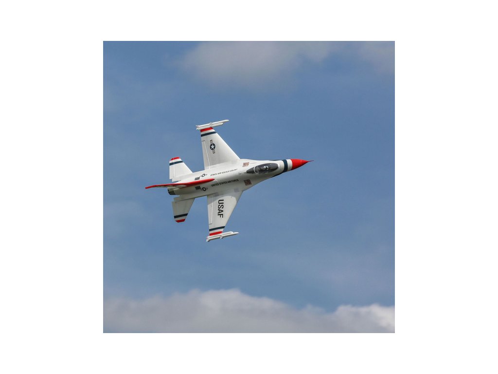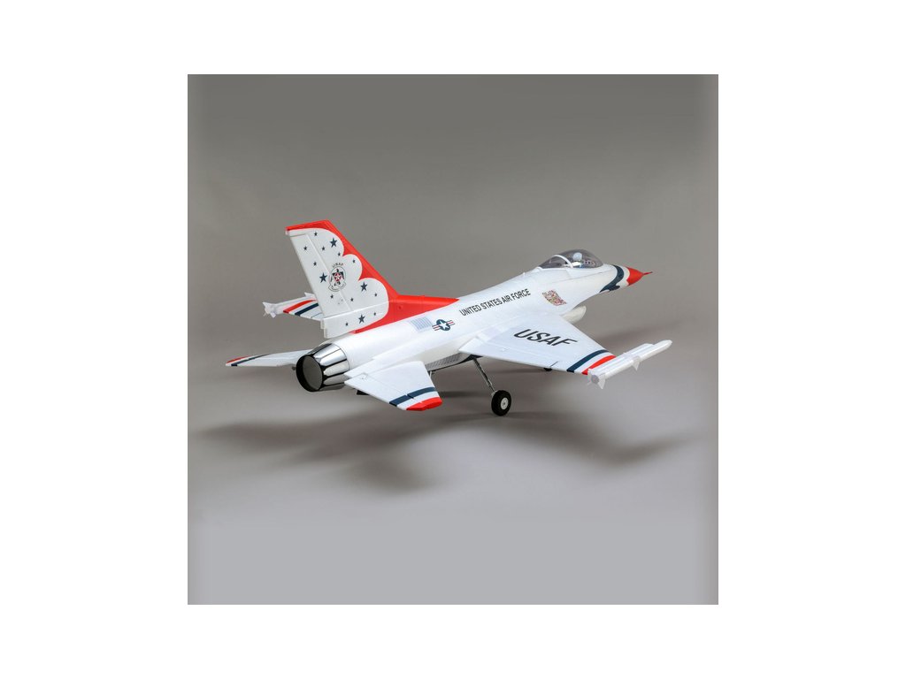 Stíhací proudový letoun General Dynamics (dnes Lockheed Martin) F-16 je jedním z nejuznávanějších a nejúspěšnějších současných jednomotorových stíhačů na světě. O jeho kvalitách vypovídá zařazení v mnoha armádách a také vyrobených přes 4500 kusů. Jeho úžasný výkon a schopnosti jsou důvodem, proč se jej světově proslulý americký letecký tým Thunderbirds rozhodl předvádět na leteckých dnech po celém světě. Model od E-flite® F-16 Thunderbirds je replikou, která nabízí vysoké výkony a současně je snadno ovladatelný. Model je vybaven exkluzivní technologií AS3X® a SAFE® Select.