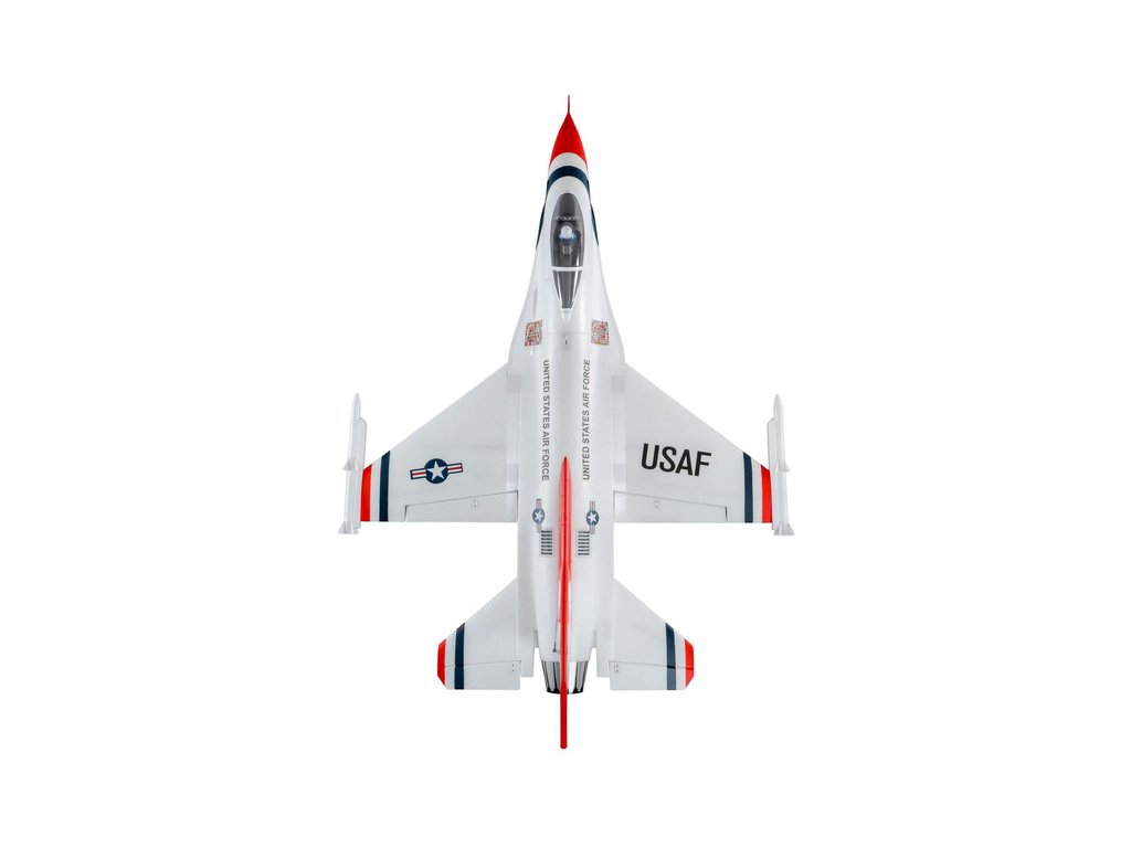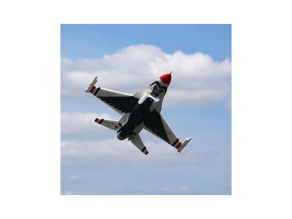 F-16 Thunderbirds EDF má téměř neomezený vertikální výkon a akrobatické schopnosti, které vyniknou i díky velmi elegantnímu designu. Rozpětí rychlostí modelu je obrovské, od minimální na vztlakových klapkách až po maximum při plném plynu. Aby bylo možné těchto přednosti využít, je potřeba použít kvalitní LiPol baterie, které snáší vysokou proudovou zátěž. Baterie nejsou součástí balení.