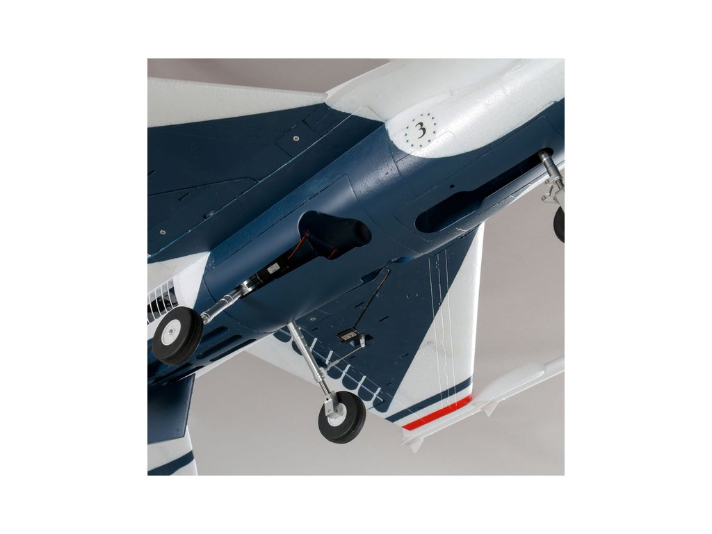 RC model letadla snad nejznámějšího amerického proudového stíhacího letadla, F-16 ve zbarvení Thunderbirds. Nový výkonnější pohon, elektronika SMART a volitelná reverzace tahu! Vynikající letové vlastnosti F-16 umožní i méně zkušeným pilotům zažít let s opravdovým proudovým strojem, Díky systému ochrany letové obálky SAFE Select bezpečně zvlátnete let i přistání. Stačí doplnit váš vysílač Spektrum a baterie.