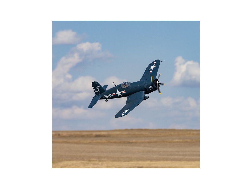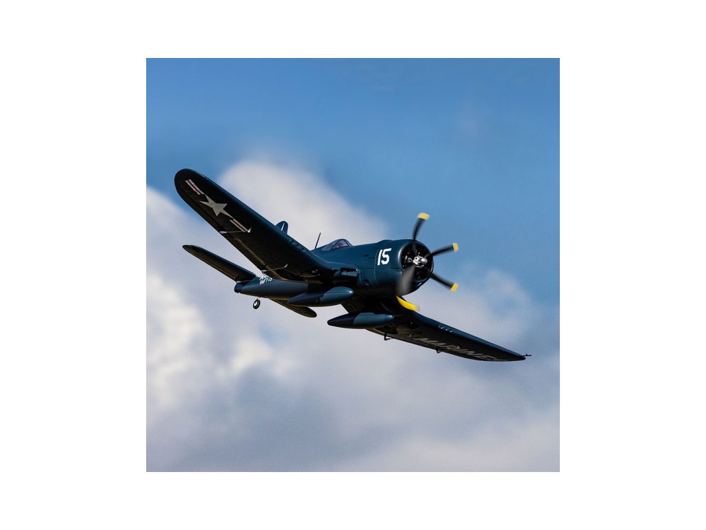 Polomaketa amerického stíhače ze 2. světové války F4U-4 Corsair BNF o rozpětí 1,2m, je určena všem příznivcům Warbirdů. Osvědčená EPO konstrukce, která je nejen velmi lehká ale díky uhlíkovým výztuhám je konstrukce tuhá, má hotové zbarvení a nainstalovaný motor 15BL. Trup i křídla jsou kompletně nabarveny s množstvím detailů v kokpitu pilota, nechybí plastické detaily, jako prolisy na křídlech a kormidlech, plátování potahu a figurka pilota.