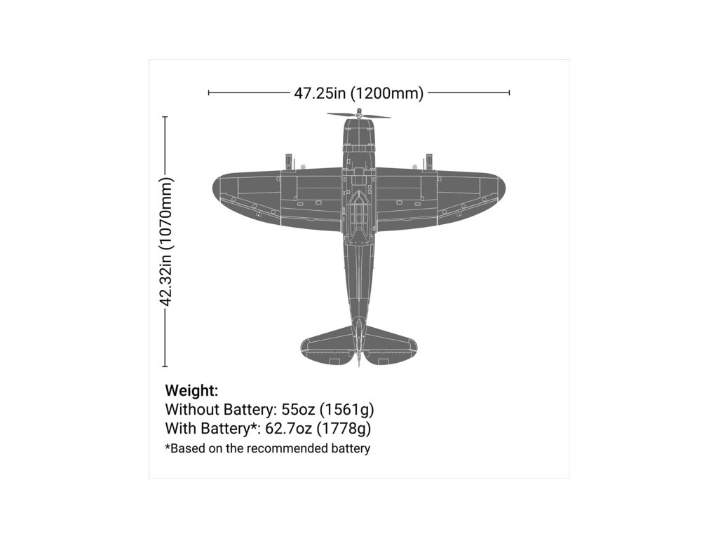 RC letadlo E-Flite P-47 Razorback 1.2m SAFE Select BNF Basic