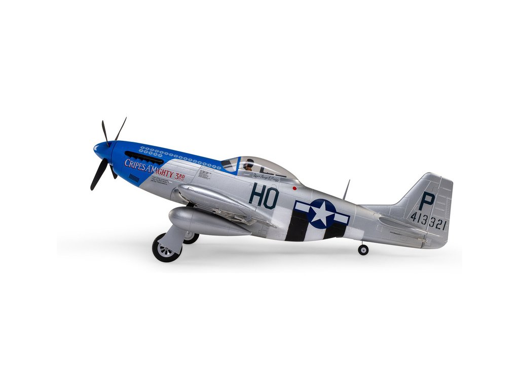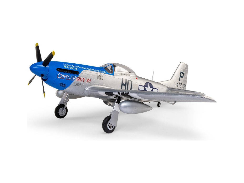 RC model legendární americké stíhačky P-51D Mustang o rozpětí 1,2m, s elektrickým zatahovacím podvozkem, nainstalovanými vztlakovými klapkami, střídavým pohonem pro 3-4S LiPol, novým regulátorem Spektrum™ Avian™ 70A Smart Lite a přijímačem Spektrum s AS3X a volitelnou funkcí SAFE Select. Osvědčená lehká pěnová konstrukce a autentické zbarvení “Cripes A’Mighty 3rd”.