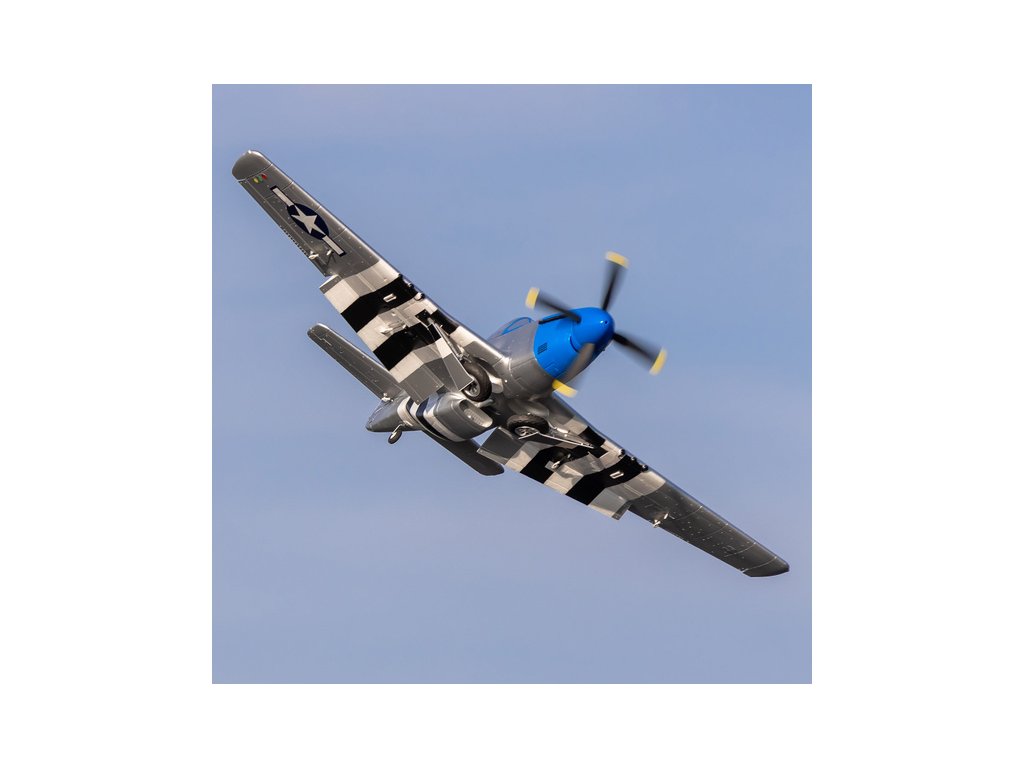Model E-flite® P-51D Mustang 1.2m má realistické zpracování, přesné tvary, 4-listou vrtuli jako velký vzor, kokpit s pilotem a přístrojovou deskou, maketové panely potahu a maketovou kamufláž “Cripes A’Mighty 3rd”. Nyní můžete mít i více výkonu při použití až 4- článkové LiPol baterie! Střídavý pohon nevyžaduje žádné nastavení. Nadstandardní vybavení funkčními vztlakovými klapkami a elektrickým zatahovacím podvozkem podstatně zvyšuje možnosti využití a v letu navíc vypadá jako skutečné letadlo. Střídavý regulátor 70A Spektrum Avian™ Smart Lite poskytuje v reálném čase napětí baterie, proud, otáčky a další data prostřednictvím kompatibilních vysílačů Spektrum.