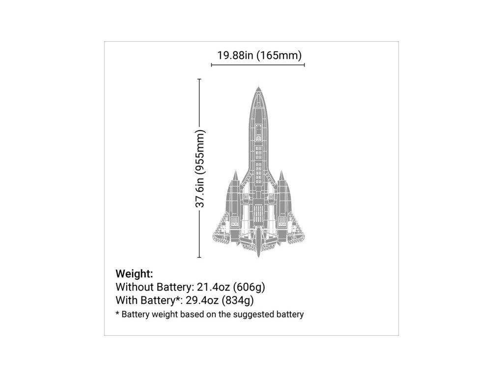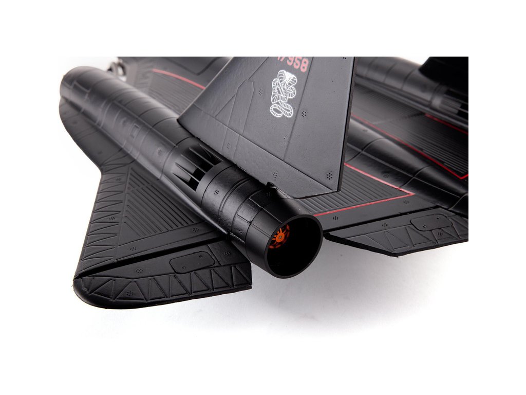 RC model letadla E-flite SR-71 Blackbird se dodává téměř sestavený a připravený k letu ihned po vybalení z krabice. Nainstalovaná řídící jednotka s přijímačem Spektrum je vybavená exkluzivními technologiemi – stabilizací AS3X a volitelnou ochranou letové obálky SAFE Select. Pohon obstarávají dvě dmychadla o průměru 40 mm.