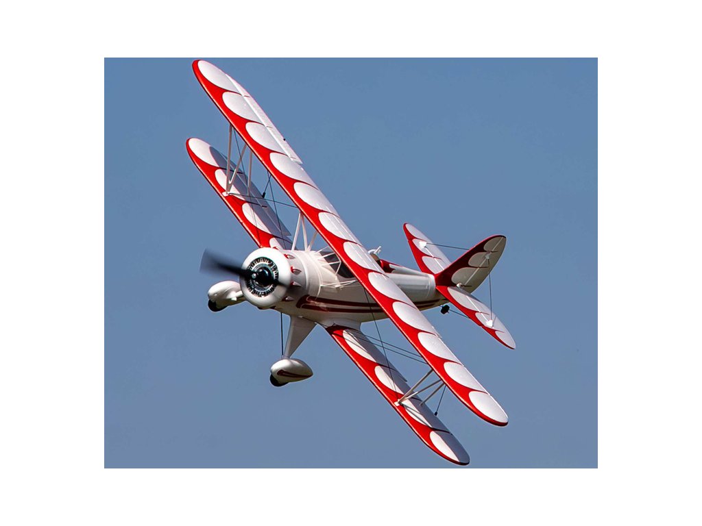 Populární sportovní americký dvouplošník Waco jako mikro RC model BNFod E-flite. Rozpětí 550 mm, střídavý pohon pro LiPol baterii 2S-3S 300mAh (není v balení), exkluzivní technologie elektronické stabilizace Spektrum™ SAFE Select a 3-osého gyroskopu AS3X®. Telemetrie napětí baterie v reálném čase je dostupná s kompatibilními vysílači Spektrum, vybavenými Spektrum AirWare™. Je vyroben z pokročilého materiálu EPS pro lehký, ale odolný drak modelu, nainstalována jsou lineární digitální serva, řídící jednotka, řada maketových doplňků.