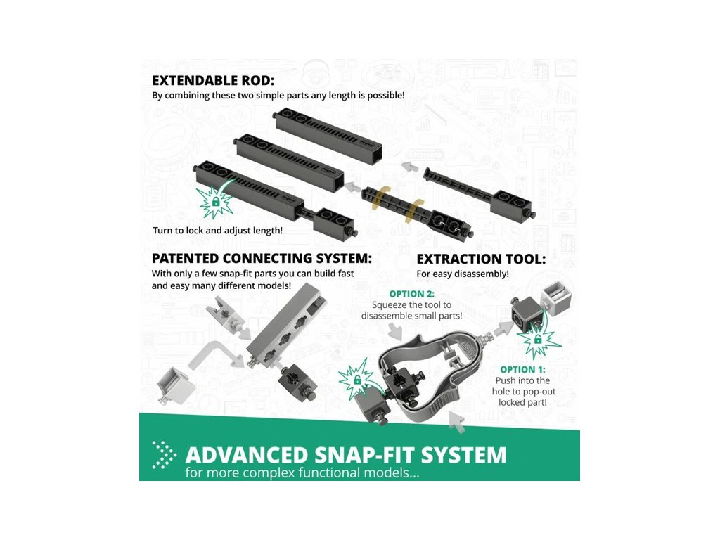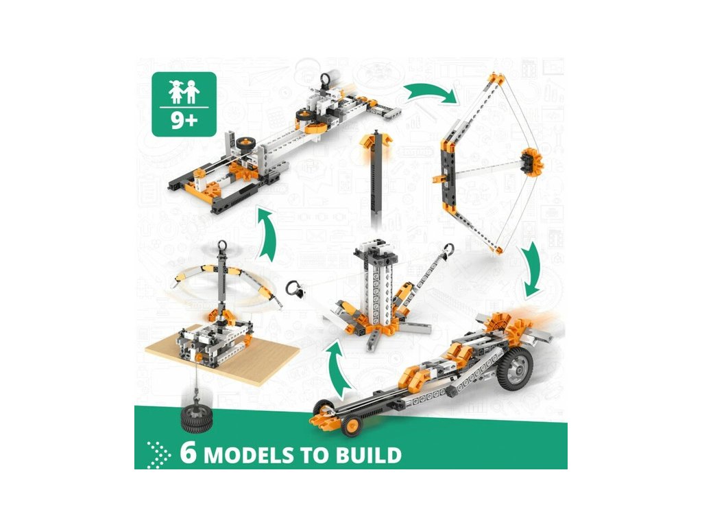 Dozvíte se vše o Newtonových pohybových zákonech, které jsou základem klasické mechaniky, která je stále přítomna ve většině každodenních situací. Experimentujte s kinetickou a potenciální energií, abyste objevili vlastnosti energie a jak se transformuje z jedné formy do druhé. Postavte si 6 funkčních modelů, jako například nárazové testovací zařízení, raketomet, brusné kolo, luk a šíp, pryžové auto a platformu pro testování setrvačnosti. Jednoduché návody na sestavení všech modelů naleznete buď online, nebo v přiložené brožuře. Brožura poskytuje podrobná vysvětlení různých použitých vědeckých principů a zahrnuje inovativní experimentální aktivity pro praktické učení. K dispozici je také sekce Kvíz, ve které můžete otestovat své nově nabyté znalosti!