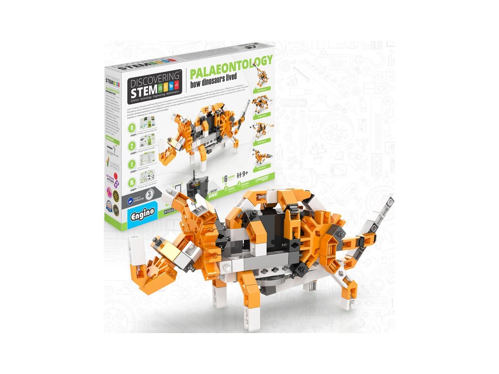Dozvíte se vše o dinosaurech ao tom, jak žili v prehistorické éře na Zemi. Postav si 5 motorizovaných mechanických modelů dinosaurů, jako je brontosaurus, stegosaurus, triceratops, pterodaktyl a ankylosaurus, a uveď je do pohybu. Jednoduché pokyny pro sestavení všech modelů naleznete buď online, nebo v přiložené brožuře. Brožura poskytuje podrobné vysvětlení různých použitých vědeckých principů a zahrnuje inovativní experimentální aktivity pro praktické učení. K dispozici je také sekce Kvíz, ve které můžete otestovat své nově nabyté znalosti! Upozornění: malé části.