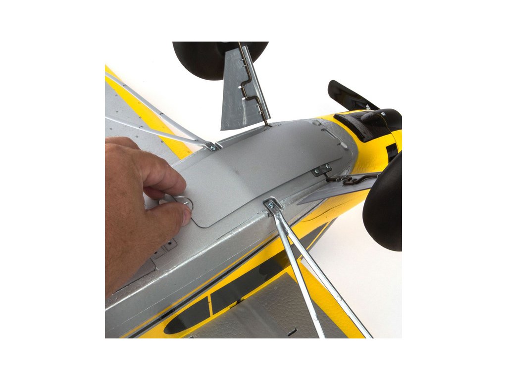 Funkční klapky jsou volitelnou možností pro působivý vzlet a přistání na krátké vzdálenosti. Tato funkce vyžaduje 7-kanálový vysílač Spektrum, serva a prodlužovací kabely. (Prodává se samostatně)