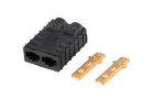 Dvoukolíkový silový konektor s plochými zlacenými kontakty se zatížitelností max. 50 A (dlohodobě 25A) se zaobleným drážkovaným tělem pro pevnější uchopení a kryty kabelů. Pro kabely o průřezu max....