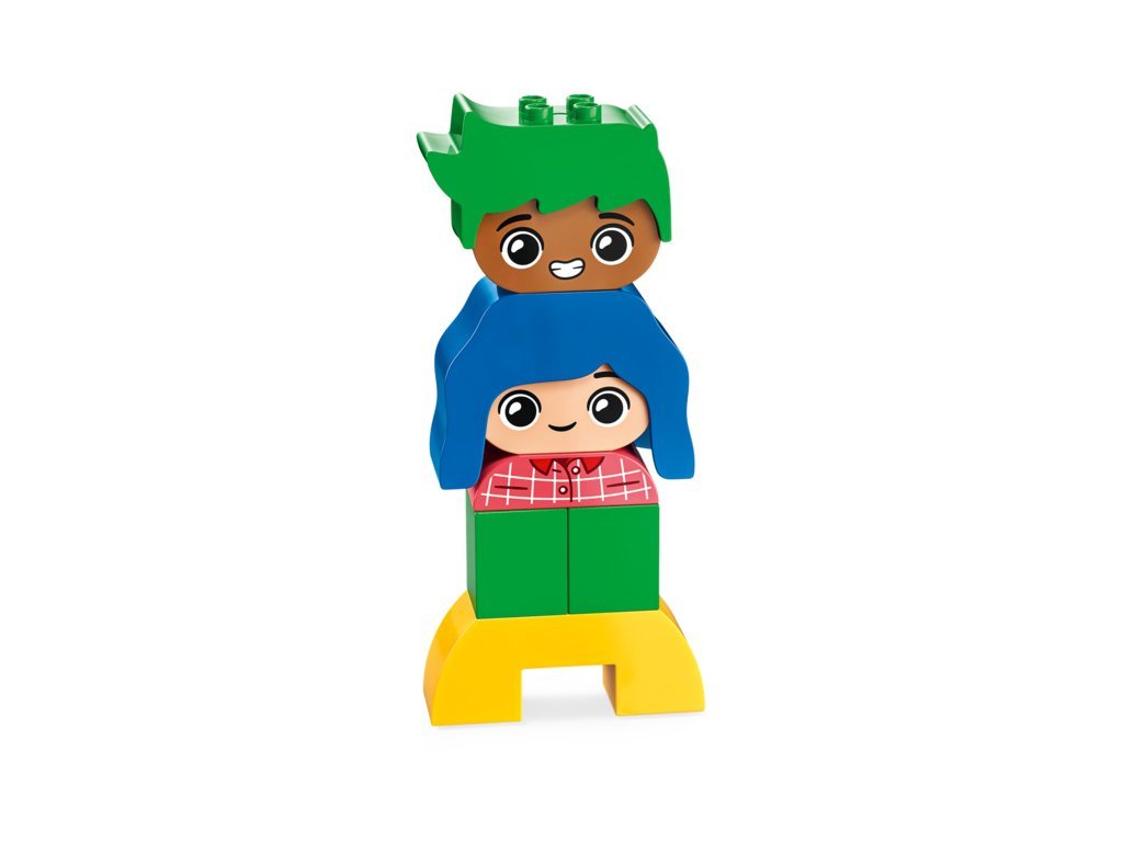 Kognitivní vzdělávací stavebnice LEGO® DUPLO® (10415) Moje první pocity a emoce dětem pomáhá porozumět vlastním pocitům. Součástí jsou 4 různorodé postavy, z nichž má každá dva výrazy, a sada tak dětem umožňuje ukázat, jak se právě cítí.