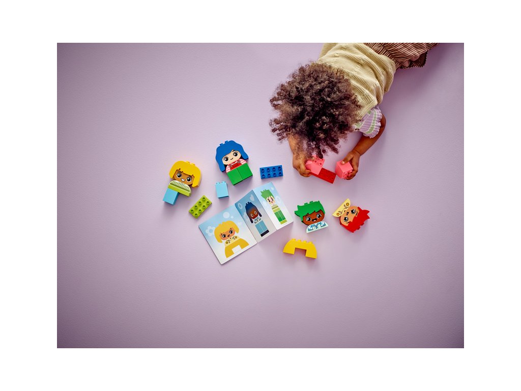 - Kreativní vzdělávací hračky – Batolata skládají kostky, vybírají stejnobarevné nebo kontrastní paruky a výrazy, které prozrazují, jak se jejich postavičky z kostek LEGO® DUPLO® cítí