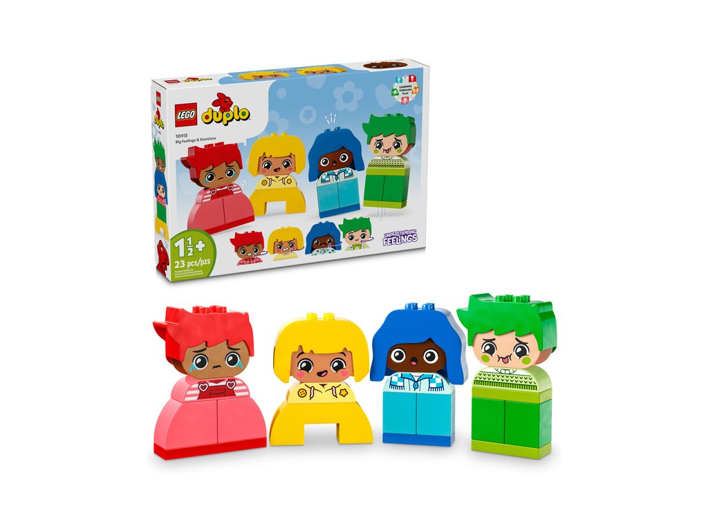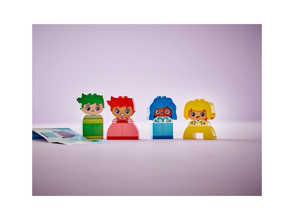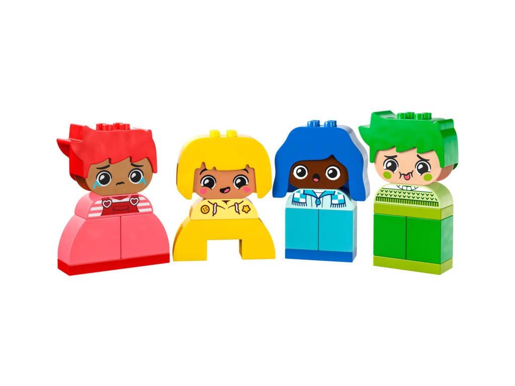 - Rozvíjení emočních dovedností dětí – Součástí stavebnice LEGO® DUPLO® Moje první pocity a emoce jsou 4 postavičky s rozmanitými výrazy, které dětem od 18 měsíců pomohou porozumět různým náladám