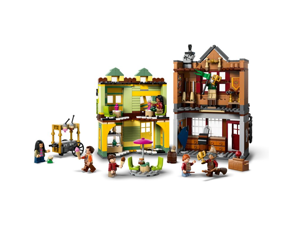 Prvotřídní potřeby pro famfrpál a zmrzlinářství lze propojit mezi sebou nebo k dalším modelům z řady LEGO HarryPotter Příčná ulice (prodávají se samostatně) a vytvořit tak okouzlující nákupní ulici z kostek.