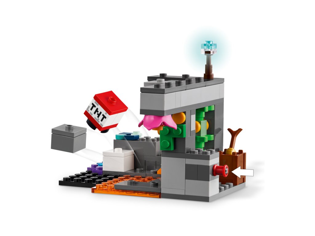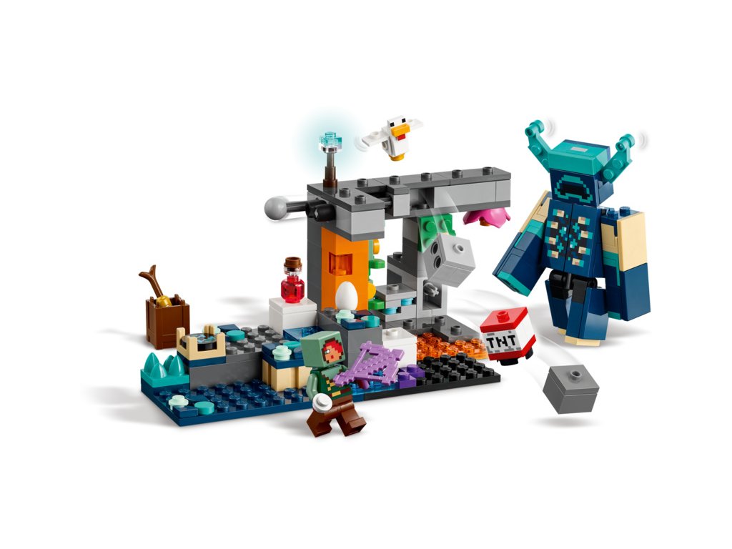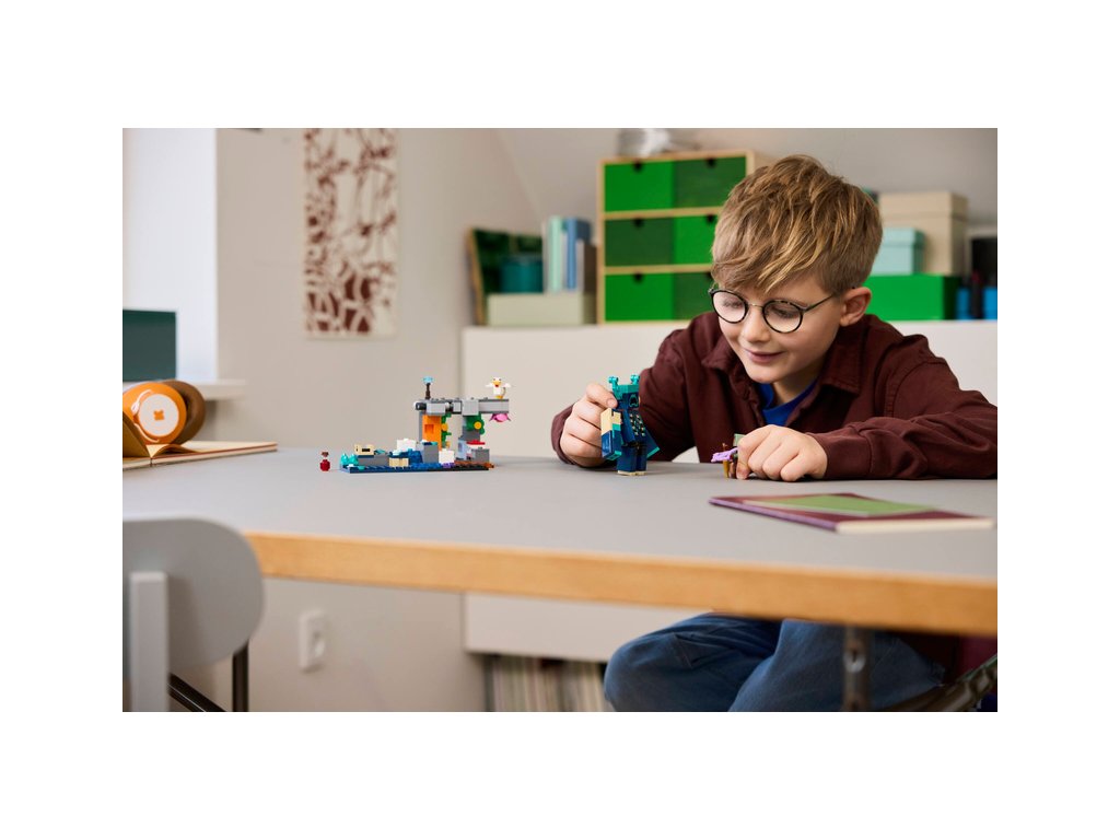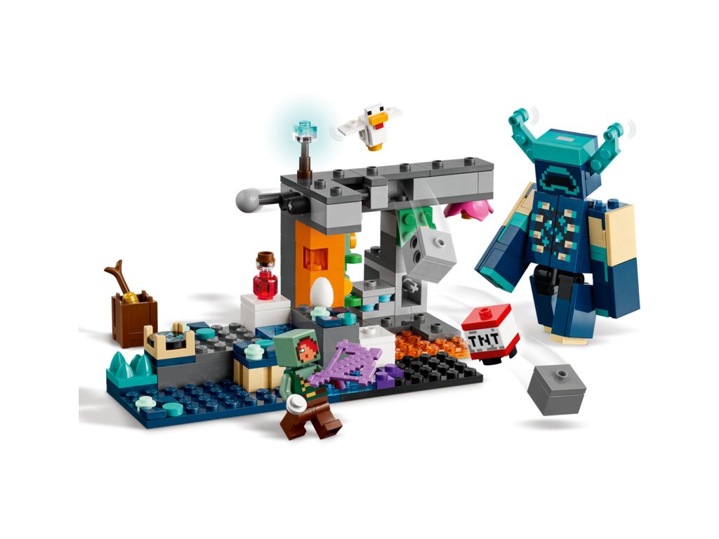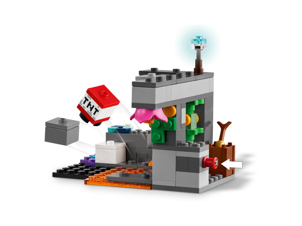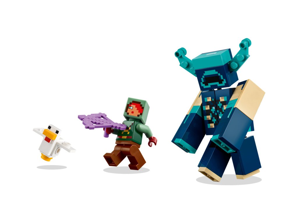 Tato všestranná stavebnice LEGO se odehrává v bujné jeskyni se sběratelskými diamanty a ametysty a obsahuje minifigurku tichého lovce ze světa Minecraft, slepici a velkou sestavitelnou figurku Strážce Minecraft s pohyblivou hlavou, rukama a nohama. Mezi herní funkce modelu patří ručně aktivovaný výbuch TNT a padající kámen. Mezi doplňky najdete také uzdravující zlatou mrkev a lektvar. Pro více digitální zábavy si děti můžou své modely přibližovat a otáčet ve 3D v aplikaci LEGO Builder. Stavebnice se skládá z 238 dílků.