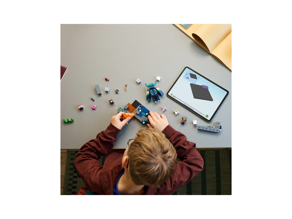 - Figurky ze světa Minecraft® – Tato stavebnice LEGO® obsahuje minifigurku tichého lovce ze světa Minecraft, kuře a velký sestavitelný model Strážce s pohyblivou hlavou, rukama a nohama