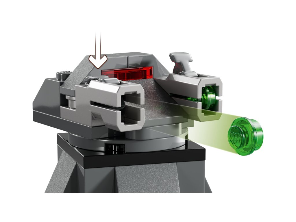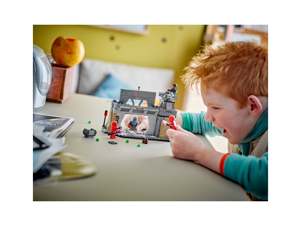 - Stavebnice Star Wars™ pro děti – Mandaloriánská základna v této stavebnici má těžce obrněné dveře se spouští, která se aktivuje při zabouchnutí, ovládací panely, a navíc otočnou vystřelovací věž