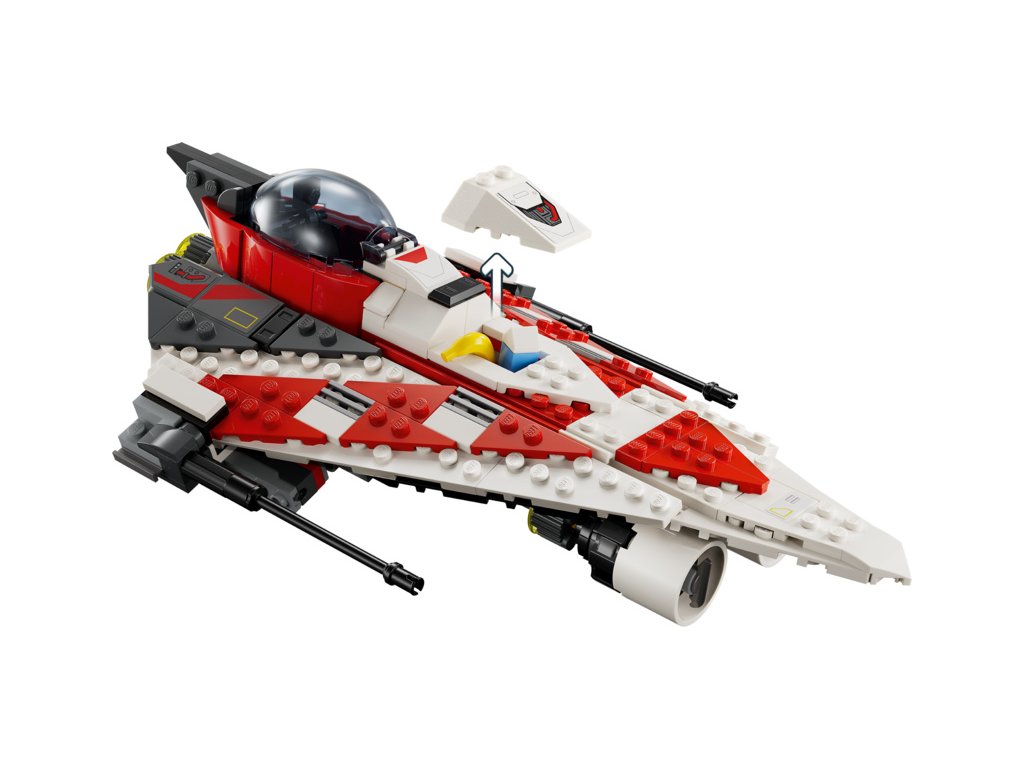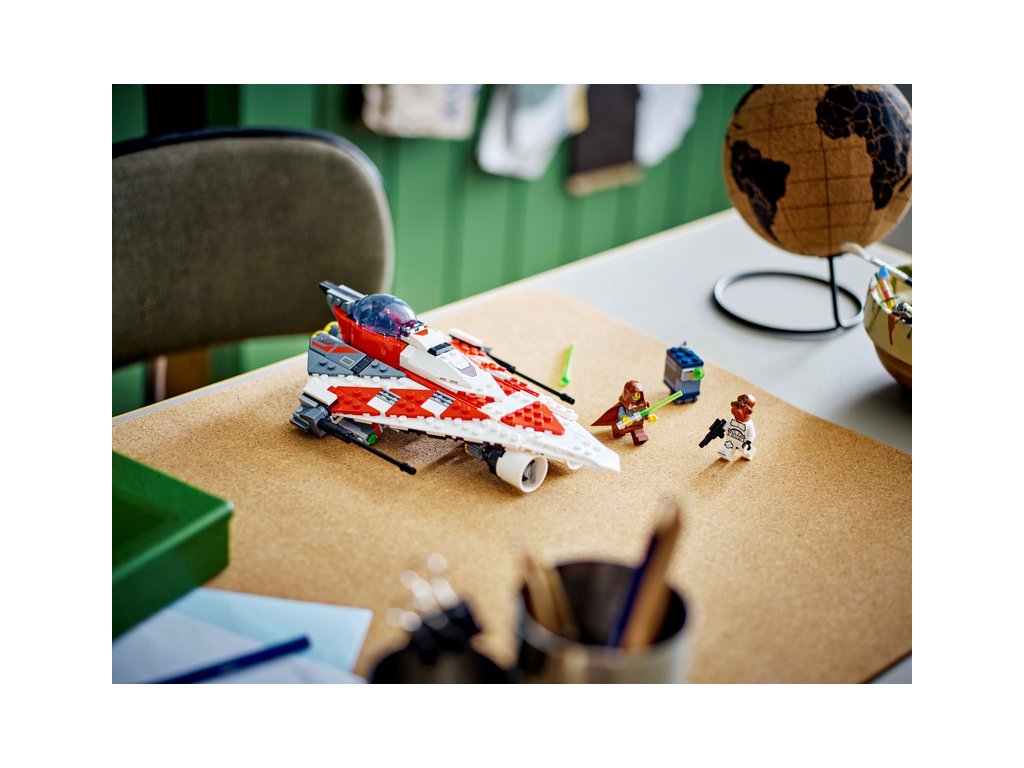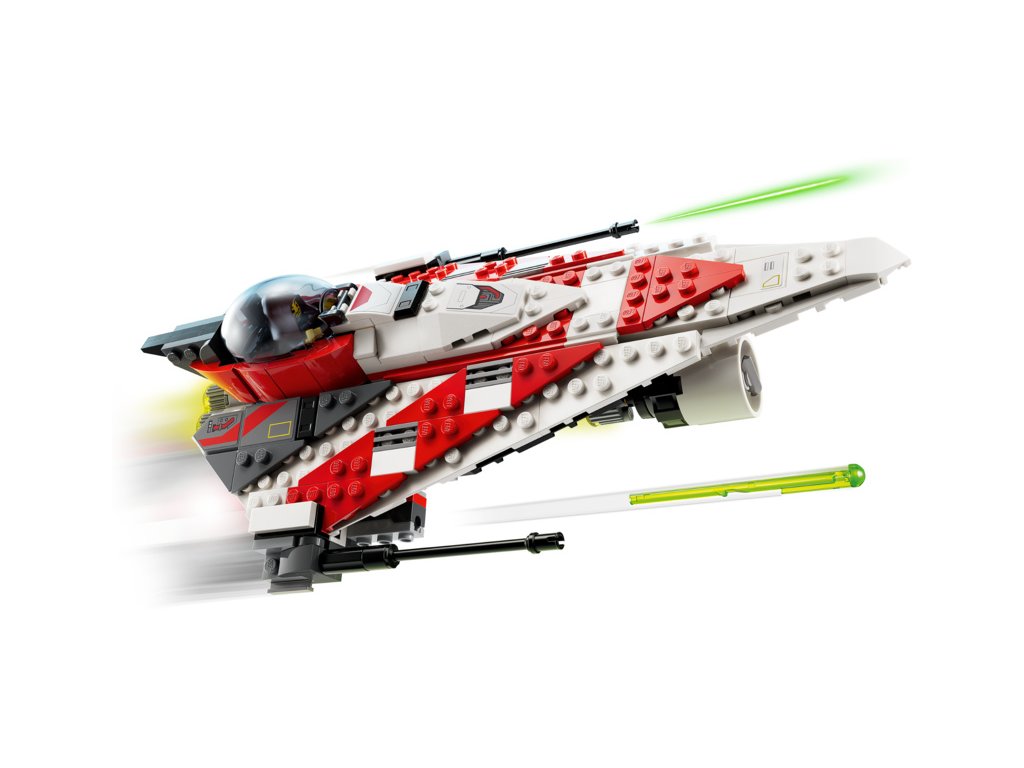 - Stíhačka Jedie ze světa Star Wars™ – Vesmírná loď z kostek LEGO® obsahuje otevírací kokpit s úložným prostorem, 2 pružinové vystřelovače, držáky na světelné meče a zatahovací podvozek