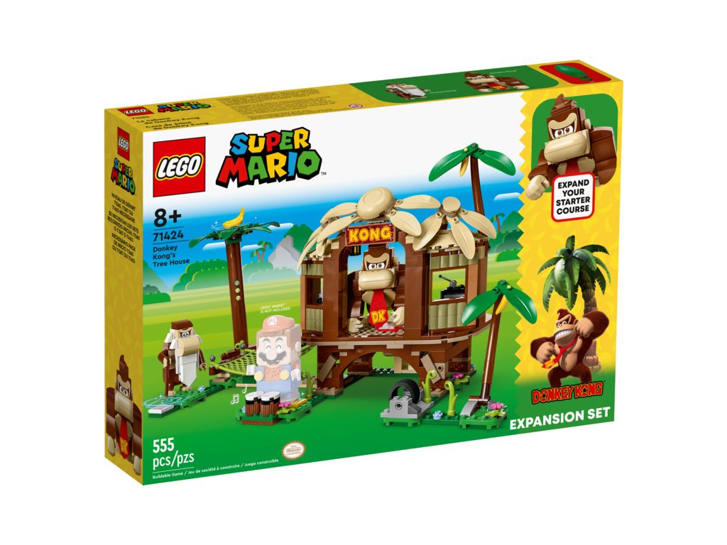 • Přidejte se k partě DK v Donkey Kongově domě na stromě (71424) – Děti se přidají v džungli k Donkey Kongovi a užijí si spoustu zábavy při rozdávání banánů a hraní na bubny konga s tímto pestrým rozšiřujícím setem LEGO® Super Mario™.
