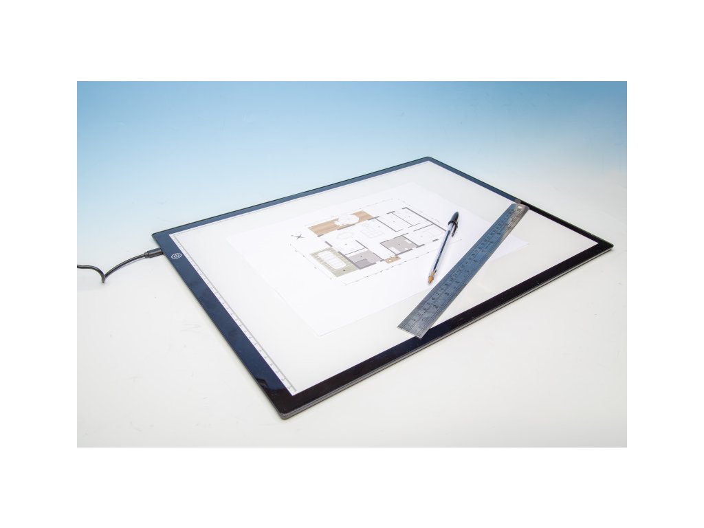 Lightcraft extra tenká svíticí podložka ve formátu A3 má konzistentní světlo na celé ploše panelu, přitom je energeticky efektivní a má nízké emise tepla. Je užitečnou pomůckou při překreslování vzorů, kaligrafii, zvýraznění nápisů, scrapbooking, quiltování, zobrazování diapozitivů, fólií apod. Pomocí zapínacího tlačítka lze volit mezi 4 intenzitami podsvícení. Ze zadní strany jsou protiskluzové podložky. Po stranách je pravítko se stupnicí v metrických a imperiálních jednotkách. V balení jsou dva magnetické držáky papíru.
