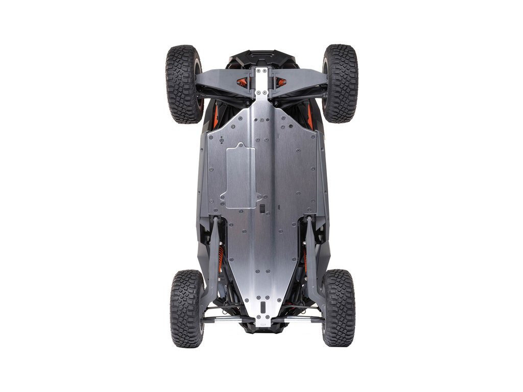 Základem platformy RZR Rey je 3mm hliníkový pevnostní plech podvozku s 2,5mm horní deskou pro větší odolnost. Spodní strana je vynikající kluznou plochou při jízdě přes terén a má zároveň vysokou pevnost a tuhost.