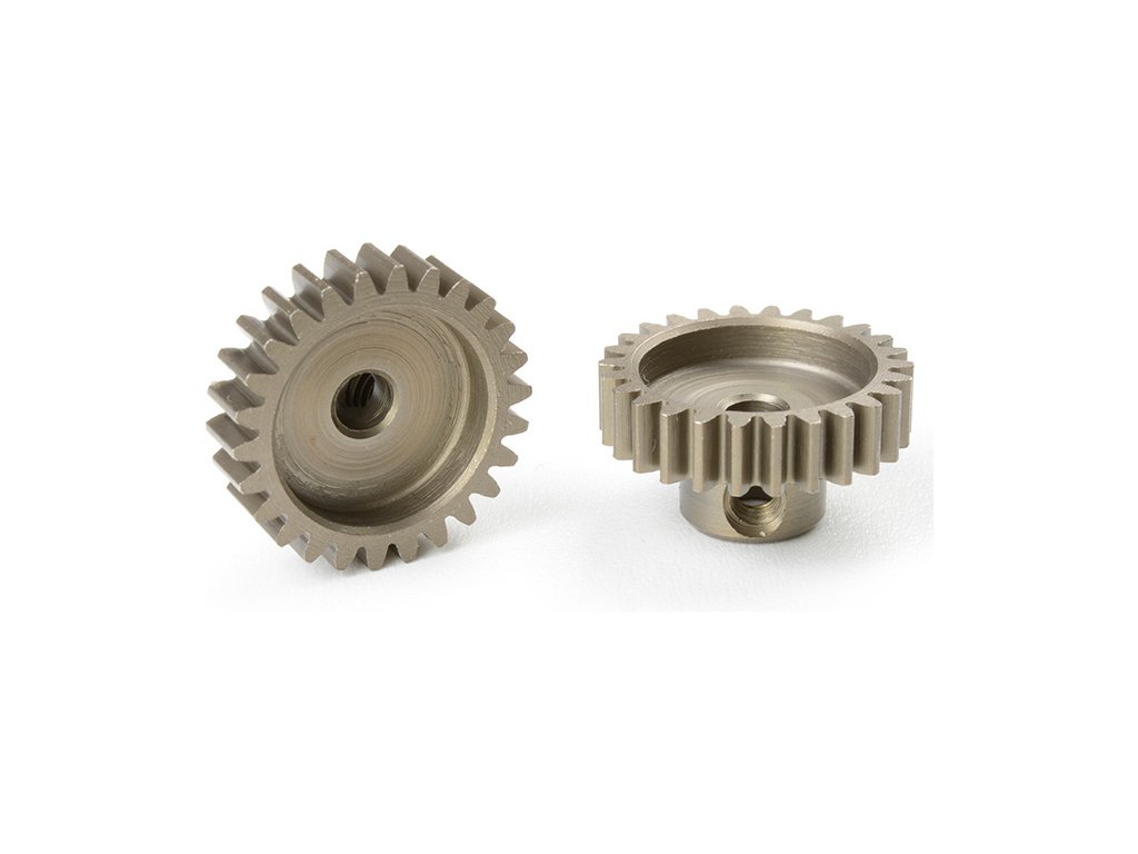 Pastorek Team Corally na hřídele elektromotorů nejen pro RC modely aut. Krátké provedení, materiál kalená ocel, 26 zubů, modul ozubení 0.6M. Otvor pro hřídel o průměru 3.17 mm (1/8 in).