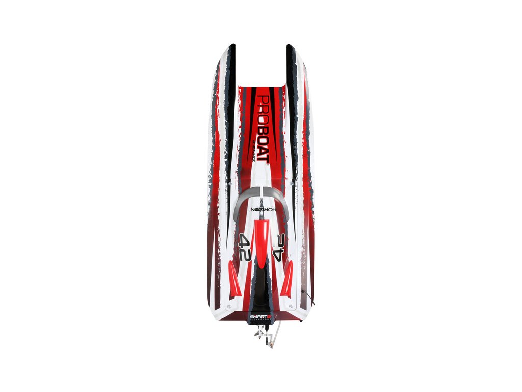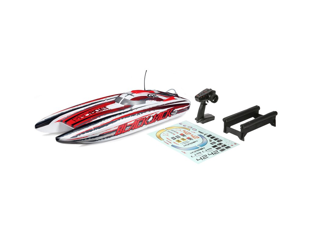 RC model lodi Pro Boat® Blackjack™ 42 Brushless 8S Catamaran je nejvýkonnější loď od Proboat. Se 4pólovým vodou chlazeným motorem Spektrum™ Marine 4685 a regulátorem Spektrum 8S 160A má výkon až 5,3 koní a dosáhne rychlost až 80km/hod! Vysílač Spektrum™ DX3 s telemetrií.