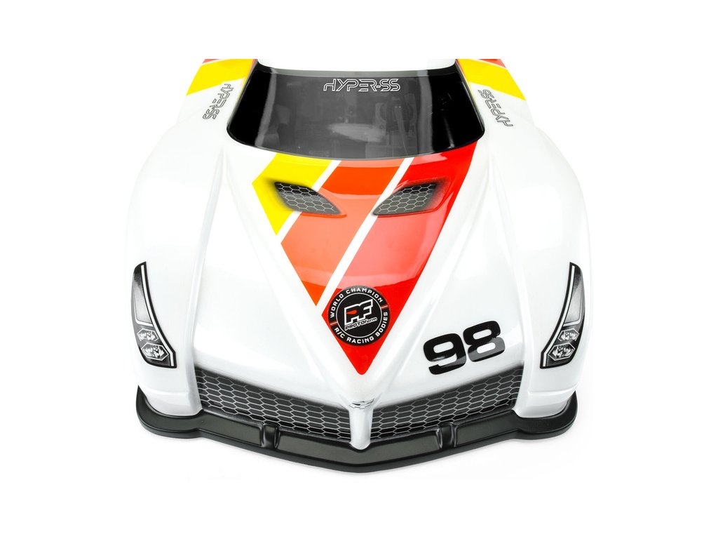Hyper-SS splňuje všechna pravidla 1:8 GT Global a je již schválen pro soutěž IFMAR na nadcházejícím mistrovství světa Tato karoserie je vhodná pro populární vozy 1:8 GT s kratším (GT1) rozvorem 325 mm a je dodávána se zadním křídlem, nylonovým montážním materiálem křídla, obtisky, maskami na okna a přestřikovací fólií.
