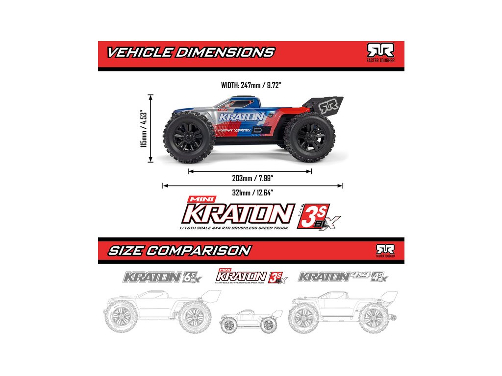 RC auto Arrma Mini Kraton 3S BLX 4WD RTR BASIC 1:16