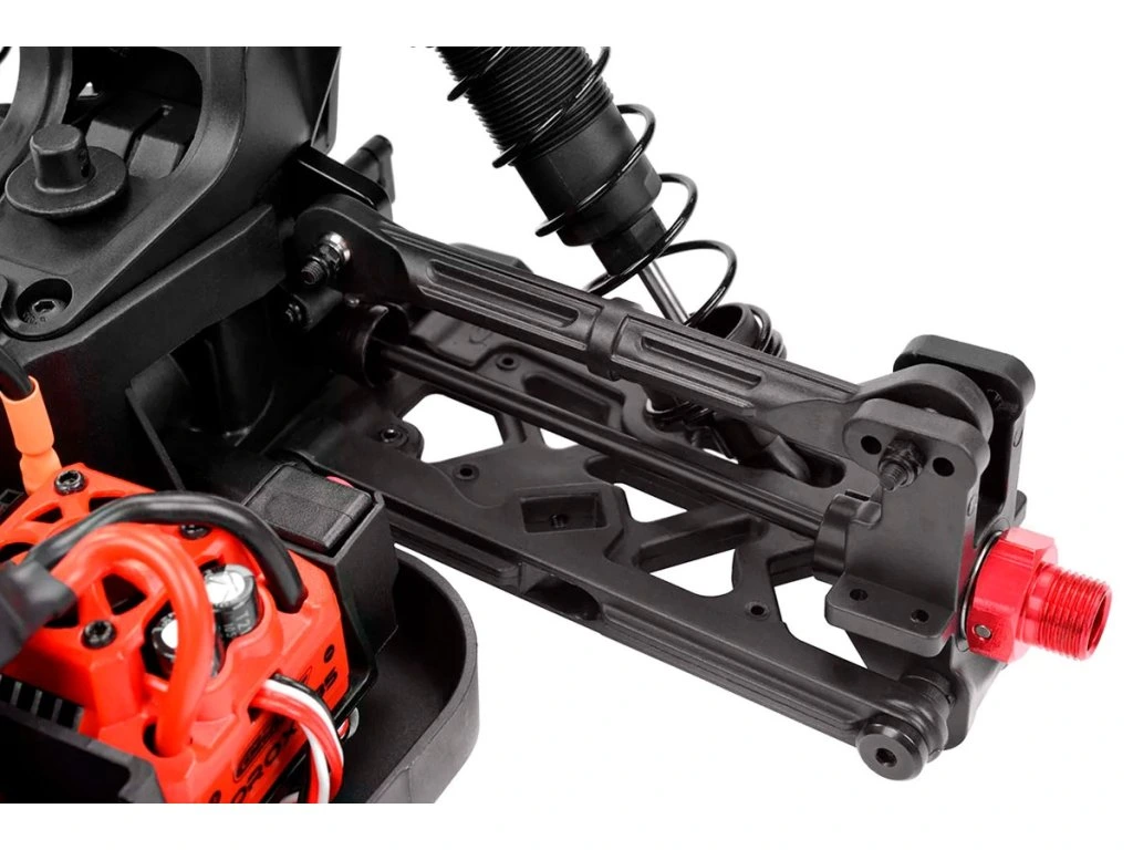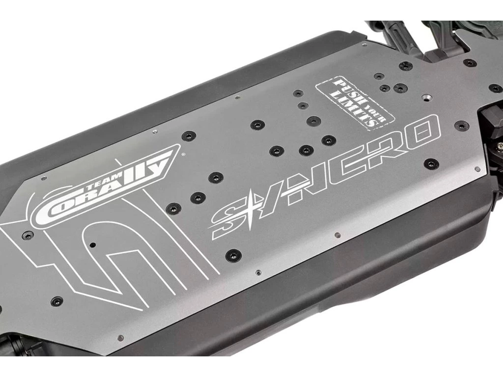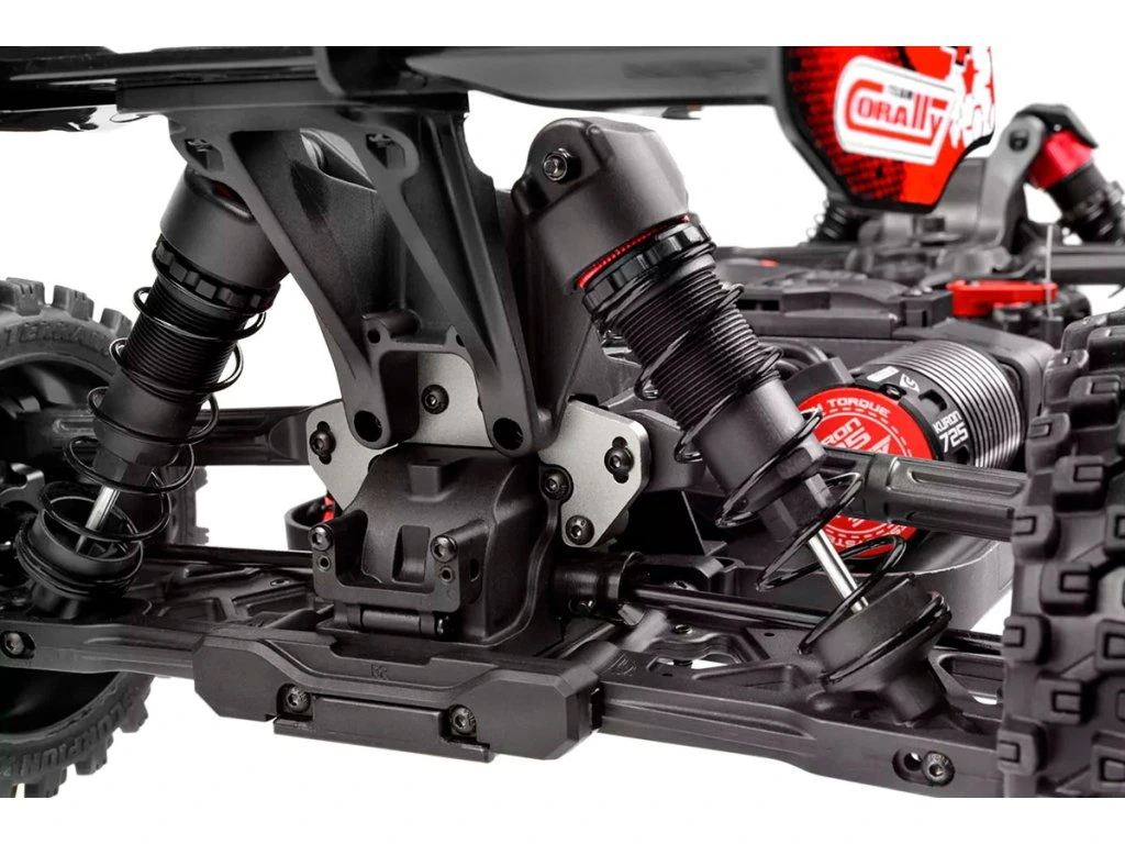 Team Corally se u podvozku modelu Syncro4 vůbec nedrží zpátky. Díky využití dobře známých a otestovaných ramen zavěšení z předchozích modelů, jako jsou Radix6 a Sketer, spolu s robustními předními a zadními těhlicemi zajišťuje Syncro4 špičkový výkon v jakémkoli terénu. Díky zařazení 4mm CNC frézovaných držáků ramen známých z modelu Spark XB6 a precizně zkonstruovaných linků (řízení, serva a zadních horních ramen) si model Syncro4 zachovává odolnost a bezkonkurenční výkon. I po zavedení nových plastových tlumičů a parohů si Team Corally pevně stojí za tím, že přináší systém odpružení, který nedělá kompromisy v kvalitě, odolnosti ani výkonu.