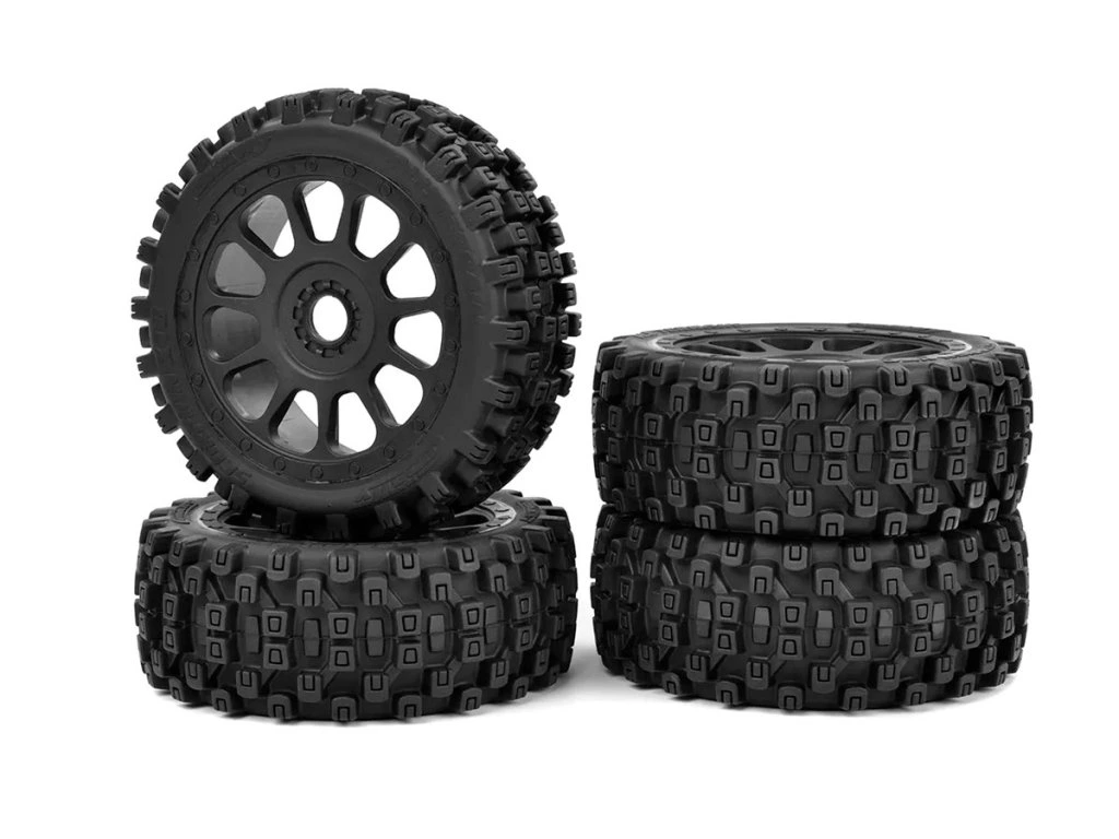 - Továrně lepené vysokorychlostní nízkoprofilové pneumatiky na černých paprskových kolech