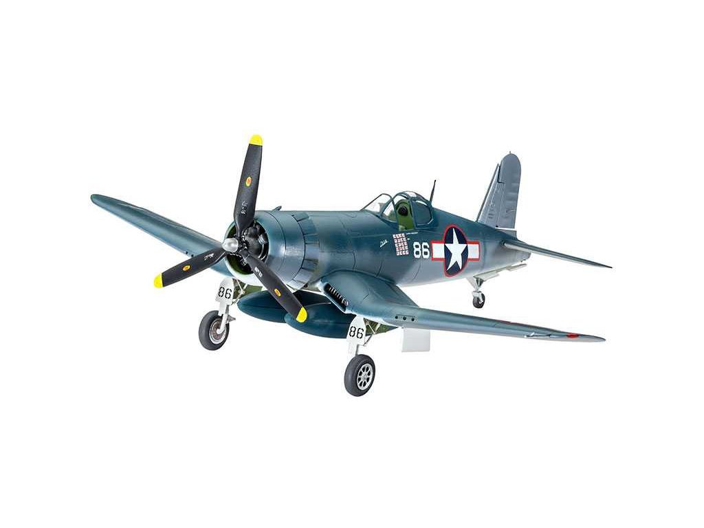 Plastikový model letadla Revell 63983 - F4U-1A Corsair ke slepení. Délka: 14,8 cm, balení obsahuje: 63 dílků ke slepení, lepidlo, štětec, barvičky 05, 56, 57 (5 ml).