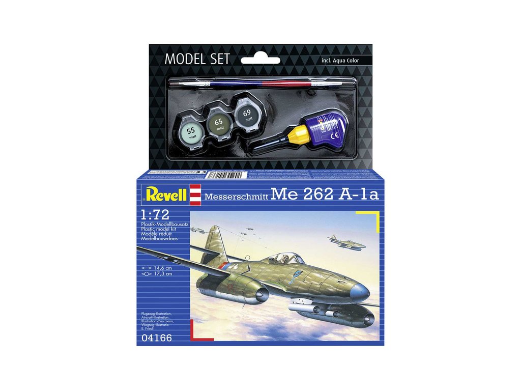 Plastikový model Revell 64166 – letadlo Messerschmitt Me 262 A-la v měřítku 1:72 ke slepení. Stavebnice obsahuje 56 dílků, rozpětí křídel 173 mm, obtížnost 4.