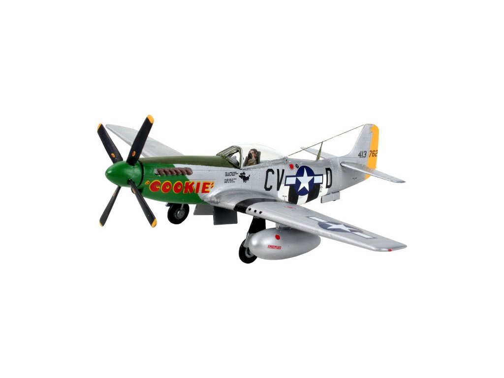 Plastikový model letadla Revell 64148 - P-51D Mustang ke slepení. Délka: 13,7 cm, balení obsahuje: 34 dílků ke slepení, lepidlo, štětec, barvičky 46, 90, 364 (5 ml).