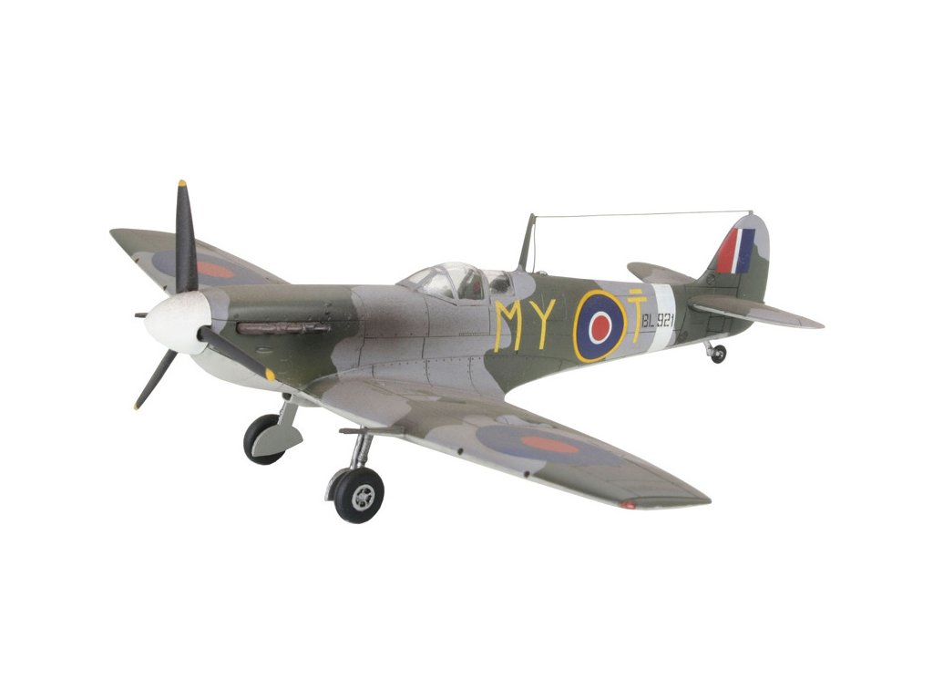 Plastikový model letadla Revell 64164 - Spitfire Mk. V ke slepení. Délka: 12,7 cm, balení obsahuje 39 dílků ke slepení, lepidlo, štětec, barvičky 57, 69, 65 (5 ml).