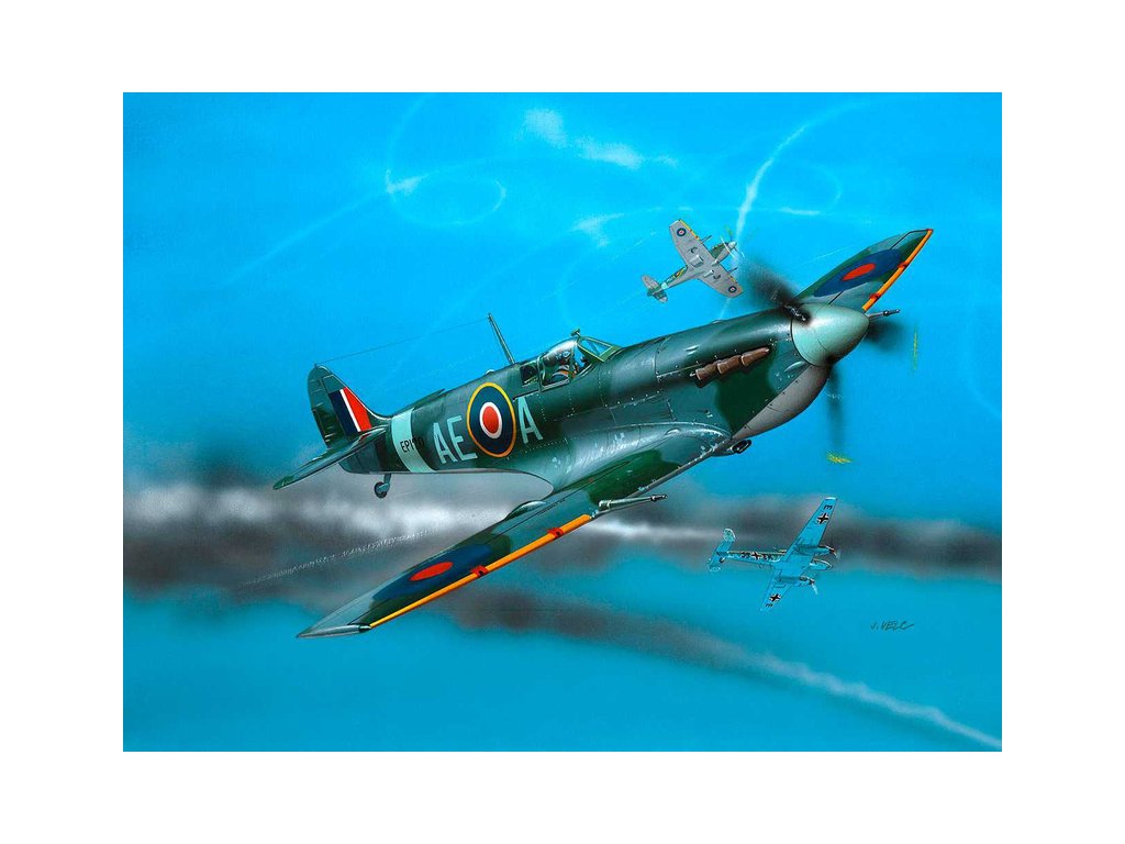 Nejslavnější britský letoun za druhé světové války kombinuje vynikající letecké vlastnosti s vyjímečným provedením. První stroj Spitfire byl doručen v červenci roku 1938. Motor RR Merlin vyvynul výkon 1,470 koní; max. rychlost 594 km/h